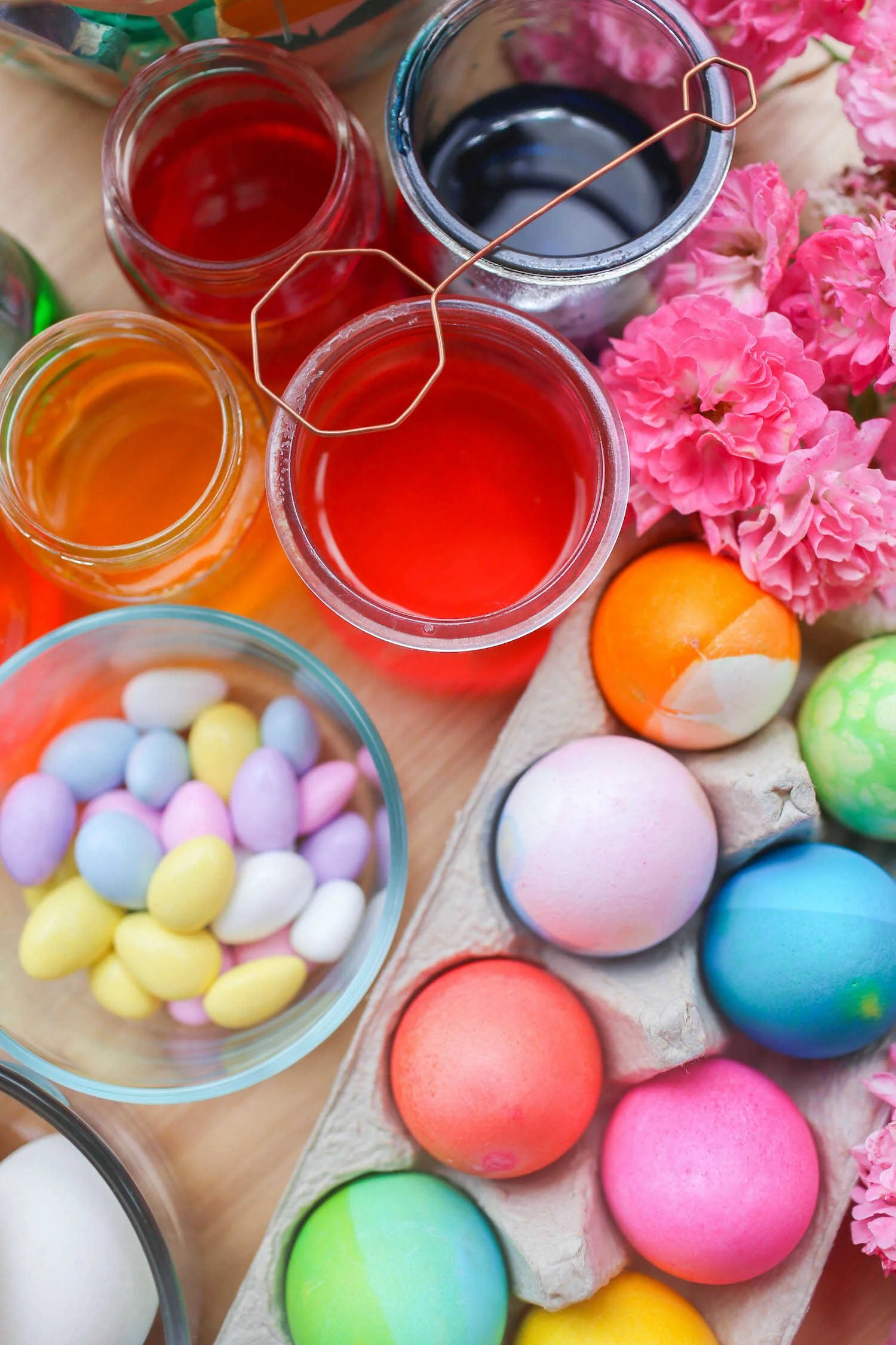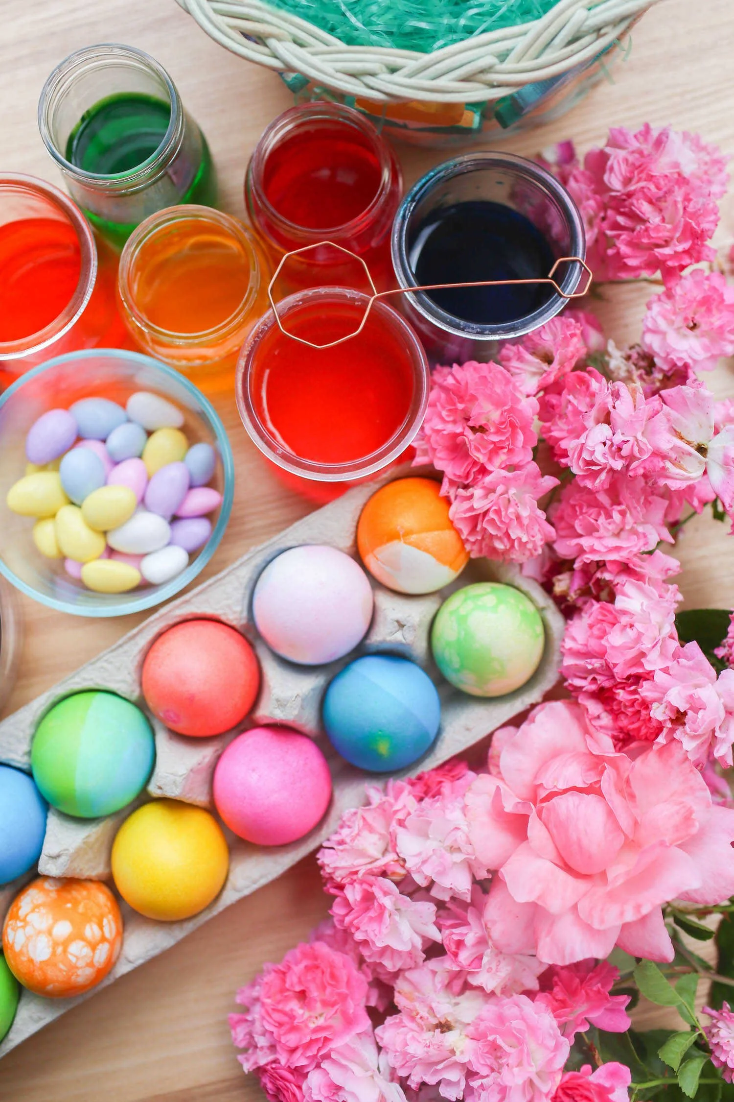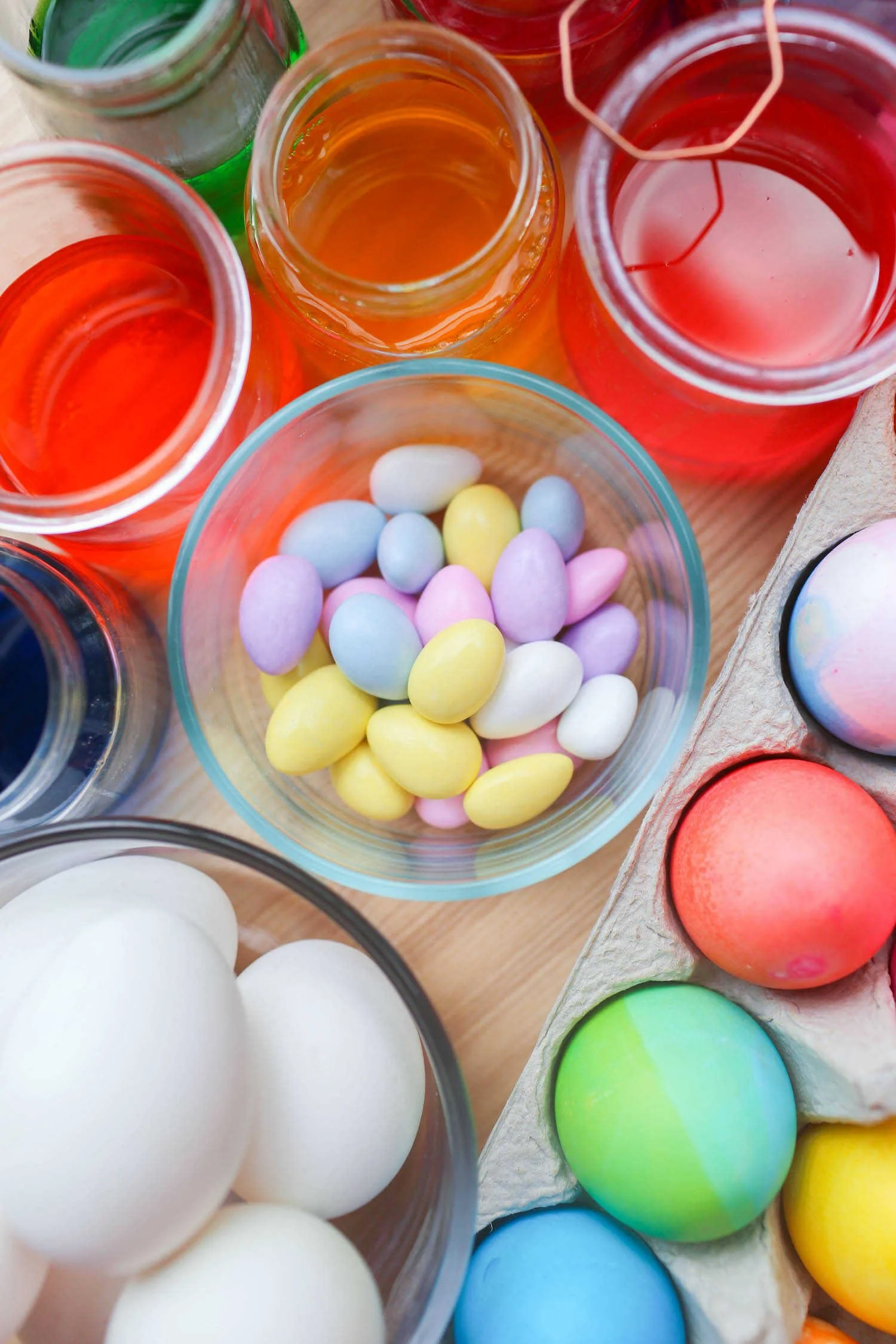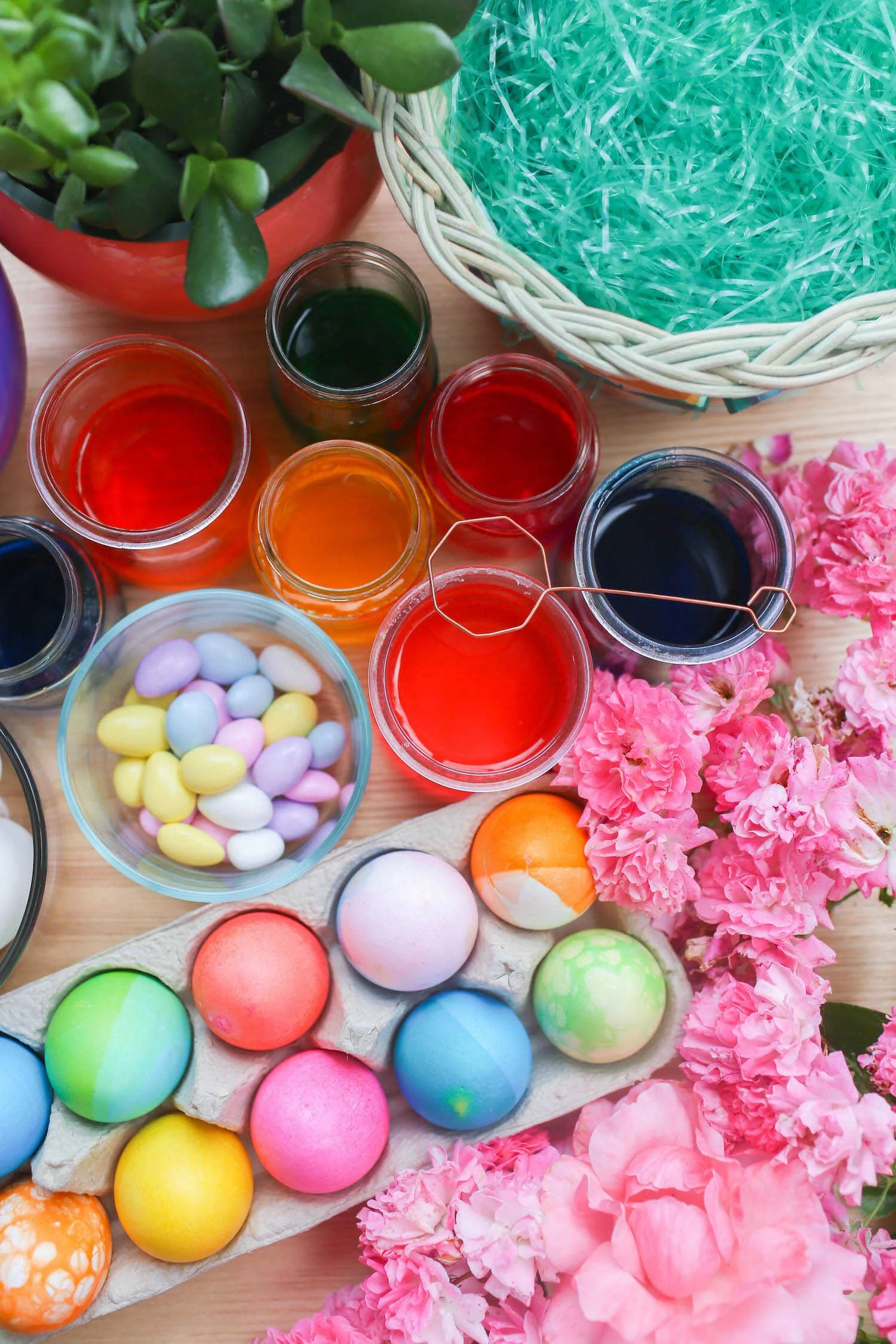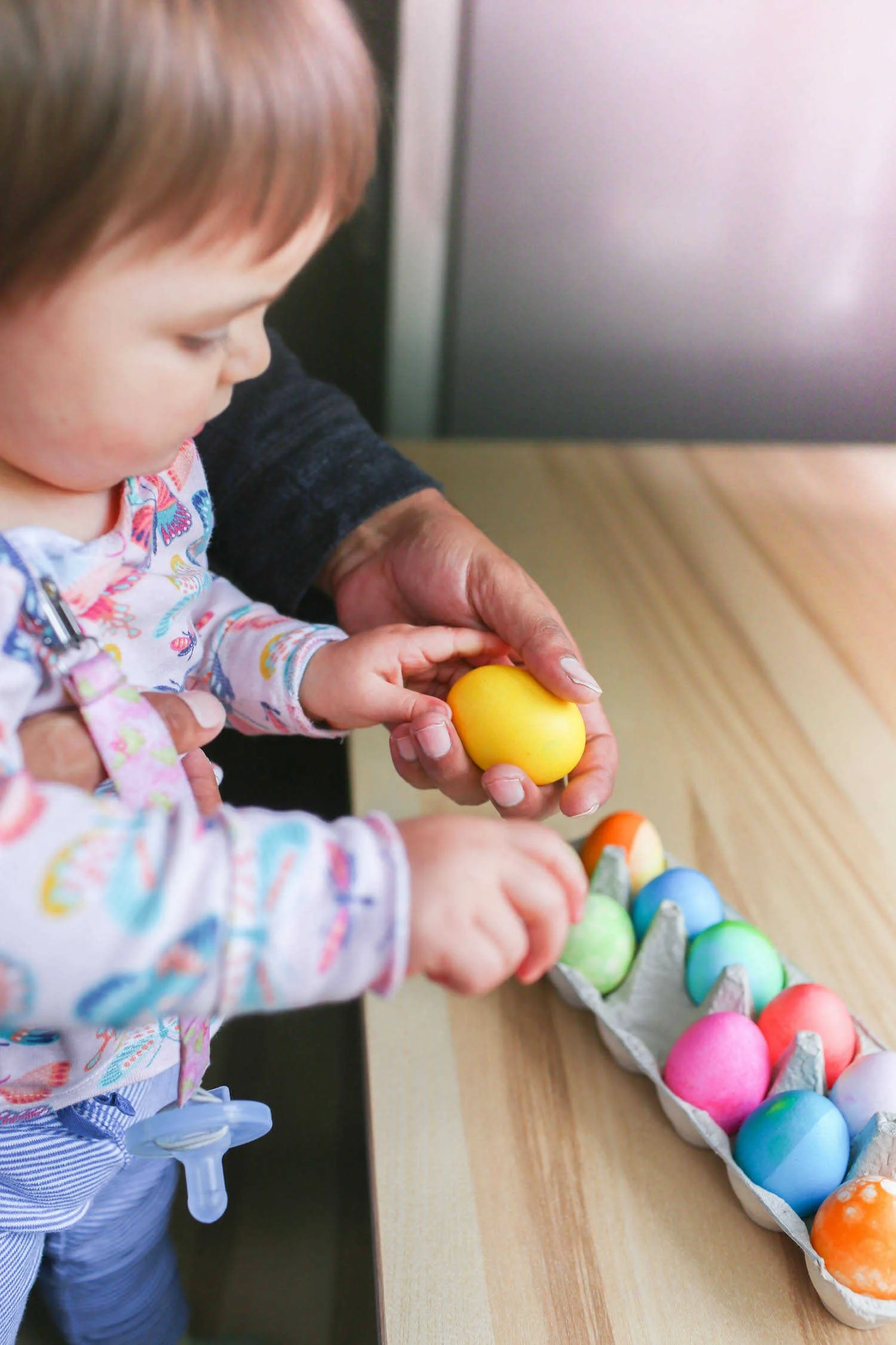 If you have a mix of older kids and toddlers, egg dying can really be fun for the older children because they can really get creative with colors and designs. They can also pair up and assist the younger kids.