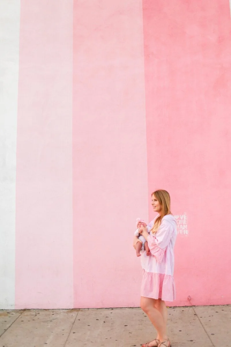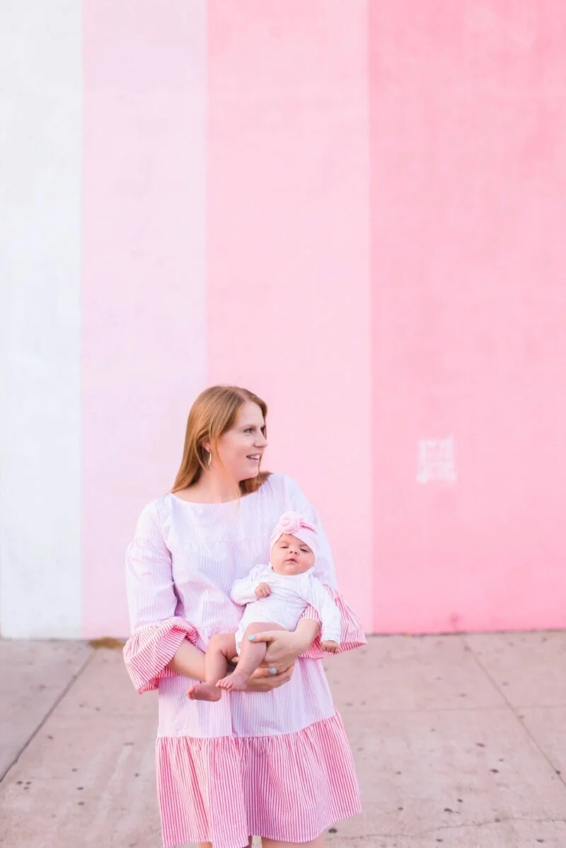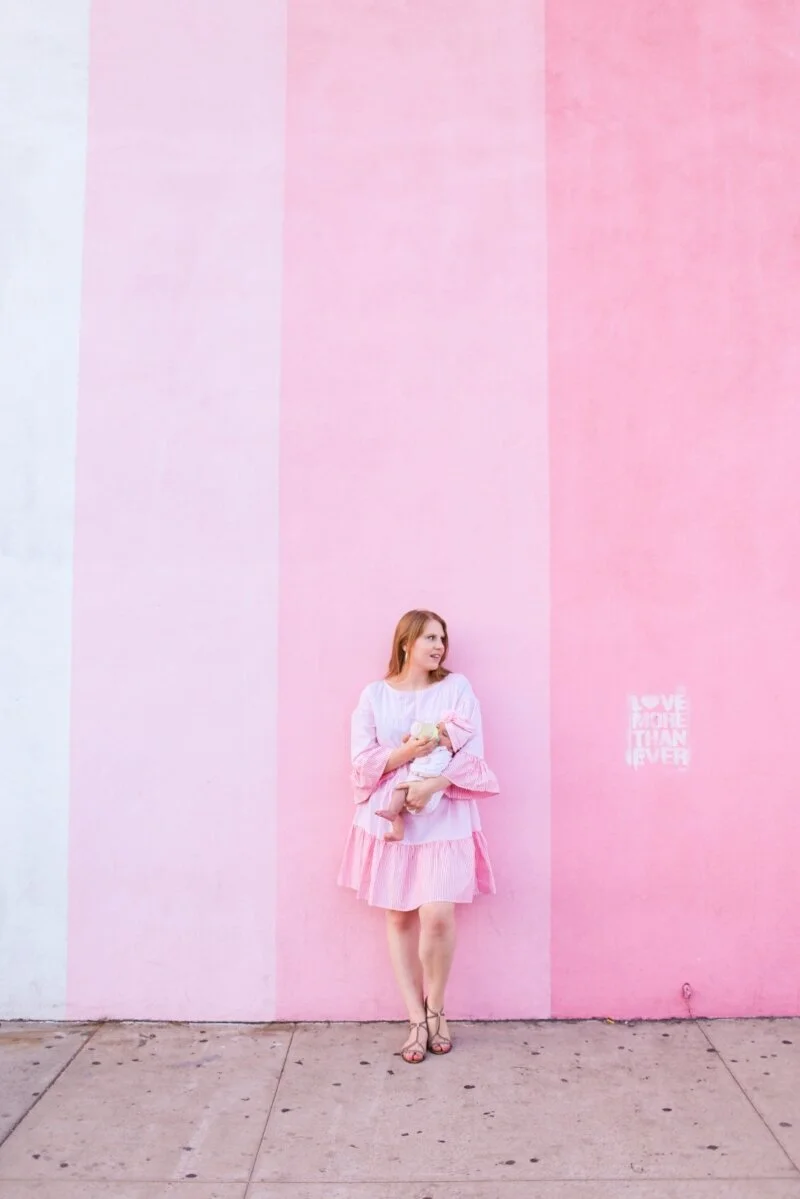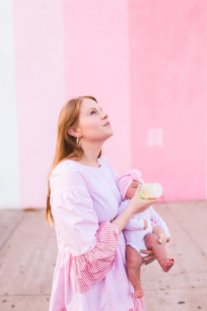 As moms we often feel like we're stuck at home because taking a baby out in public can be like traveling with a ticking time bomb. So whenever I take Scout out to a restaurant or public place, I try to pick restaurants that have a back patio with easy street access. That way I can quickly take a walk with her if she becomes loud and fussy.