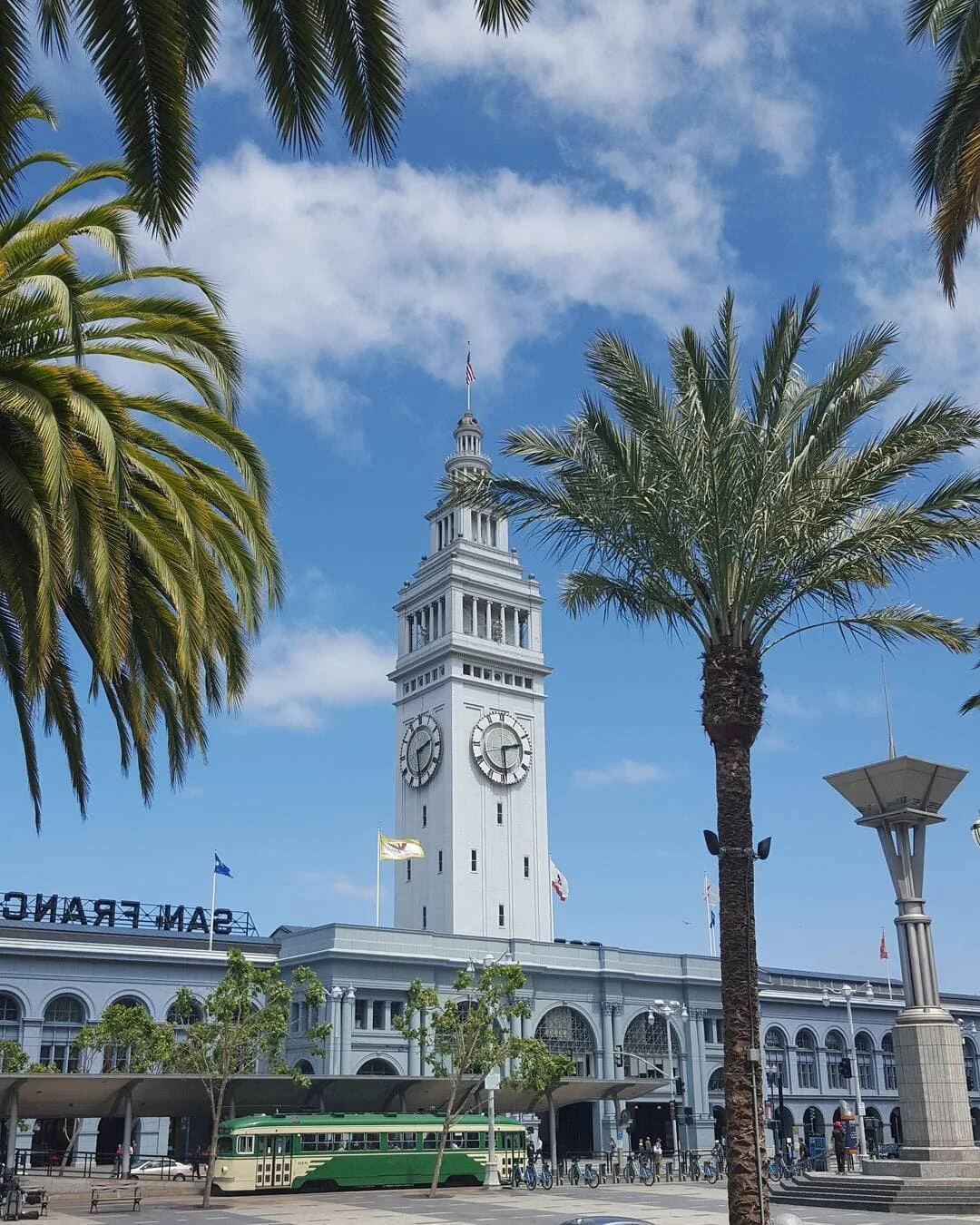 If youβve been to San Fran before, youβve probably noticed the vintage looking green streetcars that ride around downtown (see it at the bottom of this photo). These historic streets cars are referred to as the E-Line and F-Line and only cost $2.75 a ride. You can get complete route info here.