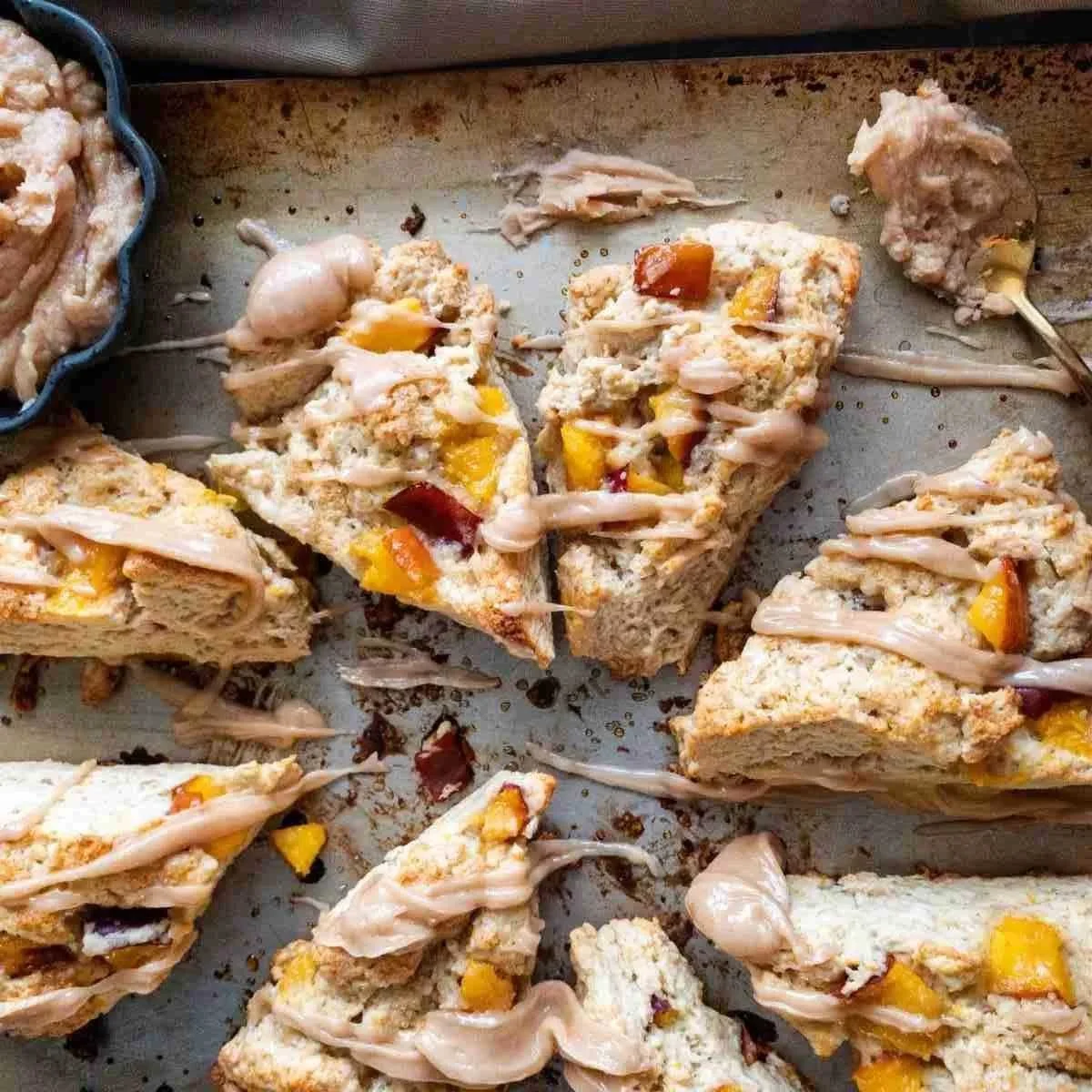 Summer's abundant stone fruits are highlighted in these brown butter peach scones. The scones with brown butter frosting have a great crunchy crust! Top these fresh peach scones with nutty brown butter glaze and it will make your tea party amazing for sure! Recipe by The Pypers Kitchen.