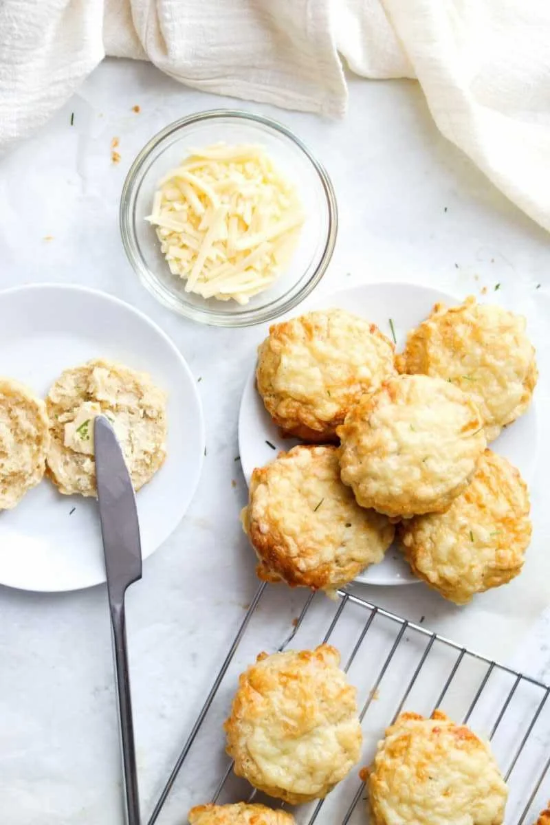 Delicious cheese scones filled with lots of cheese and flavored with chives. This recipe is so easy to make and is the perfect addition to your tea party. Recipe by My Morning Mocha.