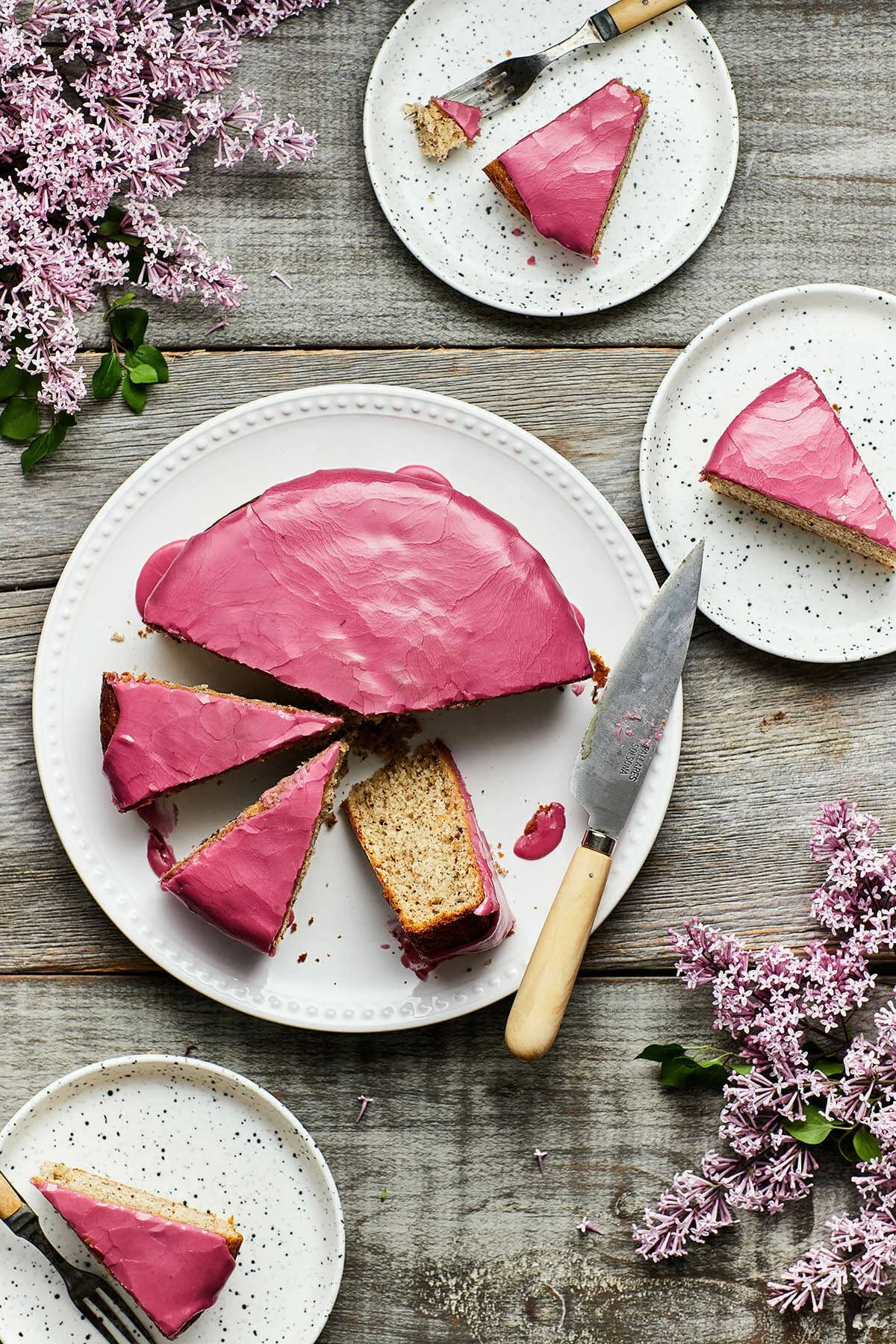 Earl Grey yogurt cake is a single-layer cake that's great for a tea party gathering. The cake is finished with a colorful blackberry glaze. Enjoy the citrusy, floral flavor of Earl Grey tea infused into a light cake. Recipe by Kelly Neil.