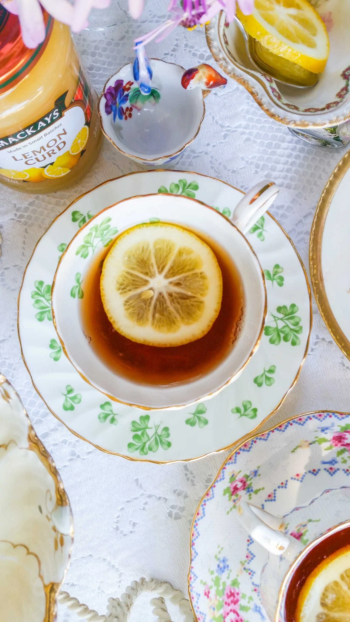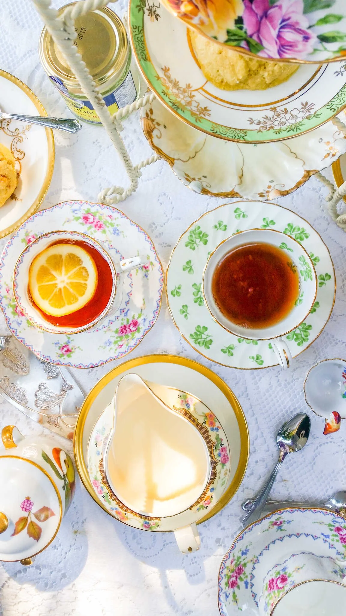 Give your guests the options to put dairy creamer (whole milk or half and half), non-dairy creamer (nut milk), sugar, honey or lemon slices in their tea.
