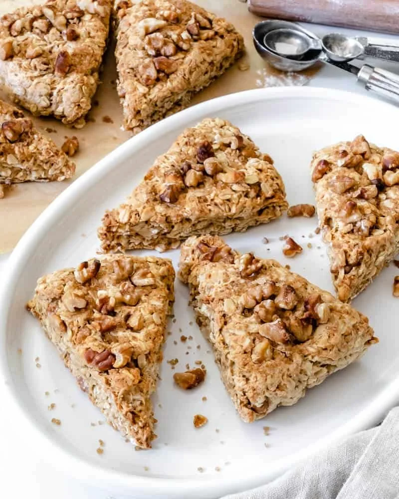 These walnut oat scones are perfect for anyone needing a gluten-free and vegan food option at your event. Apart from their delicious taste, they are extremely healthy too. The best part about these walnut oat scones is that they can get ready within 10 mins. The oats in this product are cost-effective, naturally gluten-free and packed with many vitamins, minerals, and fiber, making them perfect for your health conscious tea party guests. Recipe by Plant Based on a Budget.