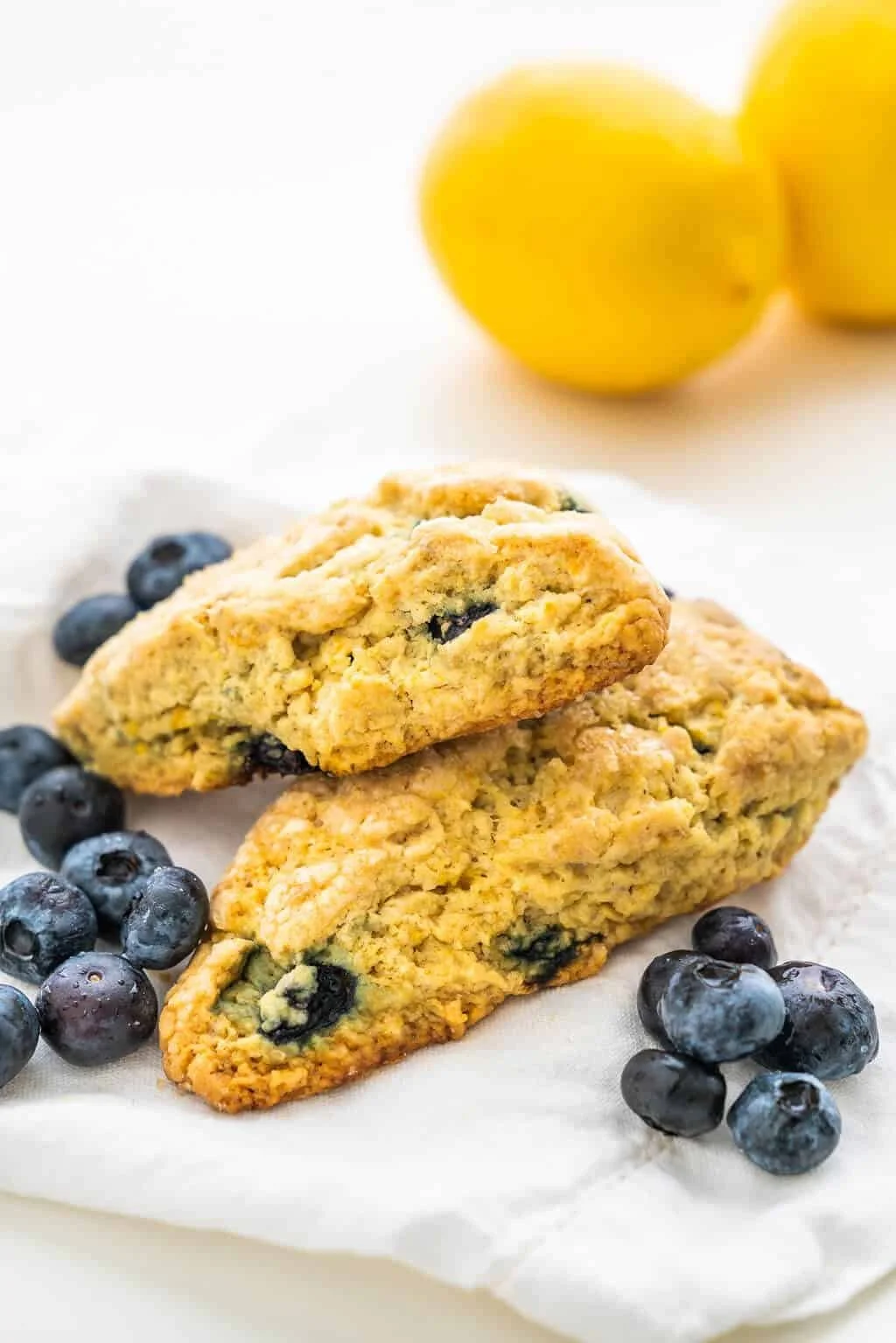 These blueberry scones are moist on the inside, crumbly on the outside and absolutely perfect! Even if you're not a scone person, you'll love these lemon and blueberry scones. Recipe by Hildaβs Kitchen Blog.