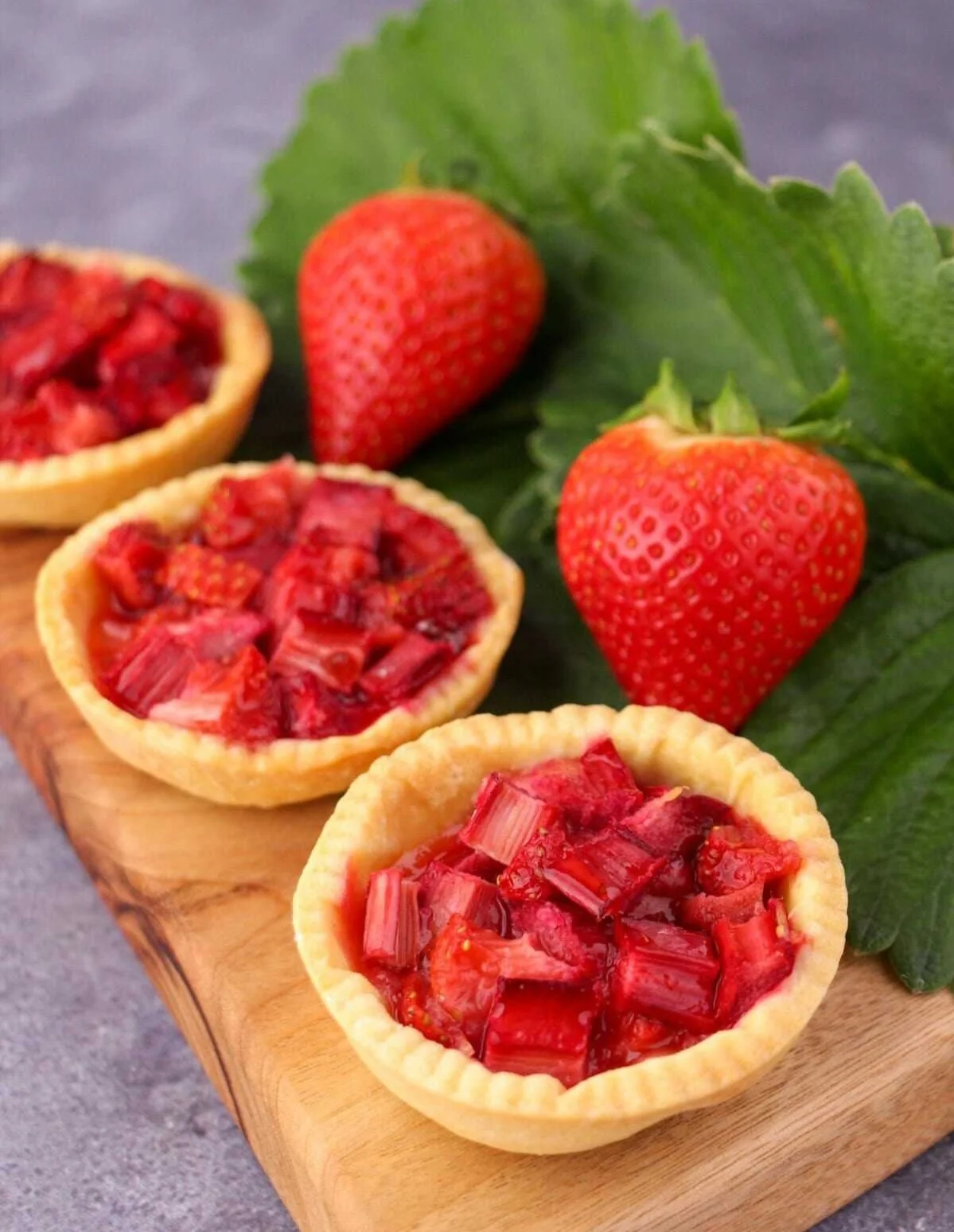Sweet strawberries, acidic rhubarb and buttery crisp pastry are a match made in heaven. Strawberries and rhubarb complement each other perfectly, making the ideal tart filling. For a time saver and simplicity, the tarts can be made with store-bought crust or pre-made tart shells. Recipe by Keep Calm and Eat Ice Cream.