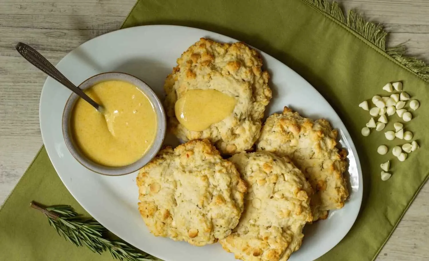 Try these White Chocolate Rosemary Scones with Pear Curd at your next tea party. They are a lovely combination of savory rosemary and sweet white chocolate and pear curd. Recipe by The Copper Table.