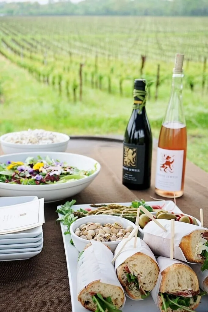 We first met at the Joseph Jewell tasting room in Forestville to pick up a couple bottles for our picnic. I loved the Pinot Noir and RosΓ©, they were the perfect amount of sweet and fruity (my knowledge of wine is very limited so forgive my novice description.) We sat at a picnic bench under enormous oak trees overlooking Floodgate Vineyards. Their rolling hills filled with grape vines stretched as far as the eye could see, it couldn't have been more scenic. Our picnic lunch was the true meaning of farm-to-table. The grapes from the wine were grown within mere feet from us and the nosh came from local Napa farms. The food was absolutely delicious and welcomed after our drive up from San Francisco. I particularly loved the Pinterest worthy colors from the salad with flowers, a blogger's dream to photograph (hence the multiple photos).