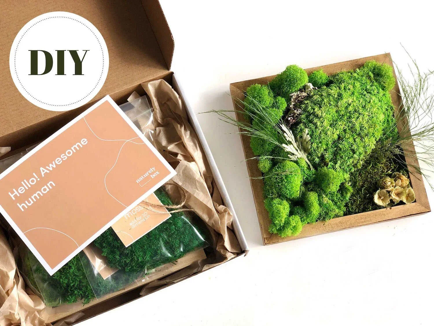 Get creative and make your own living masterpiece with this Do It Yourself Moss Wall Art. The Naturely Box kit comes with everything you need including a pine wood frame and a mixed selection of of naturally preserved moss, lichen and ferns.