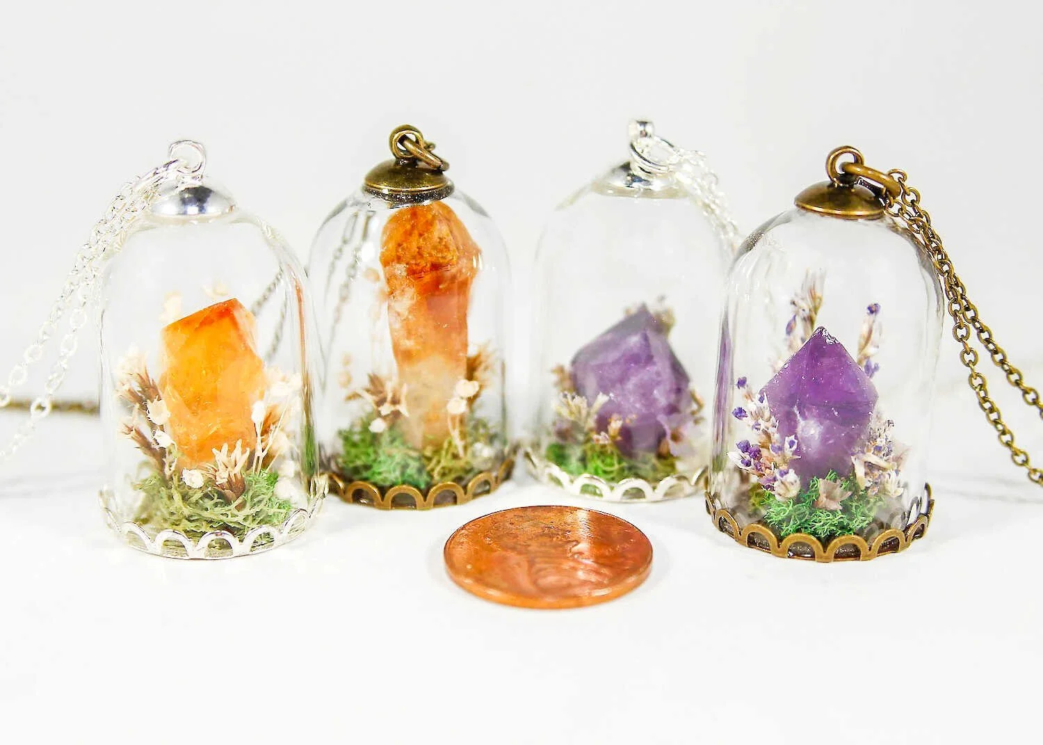 First came the living decor and now comes the living jewelry trend. With perfect timing of the crystal movement, these micro terrariums with crystals can channel positive energy and harmony for those adorning these pendants.