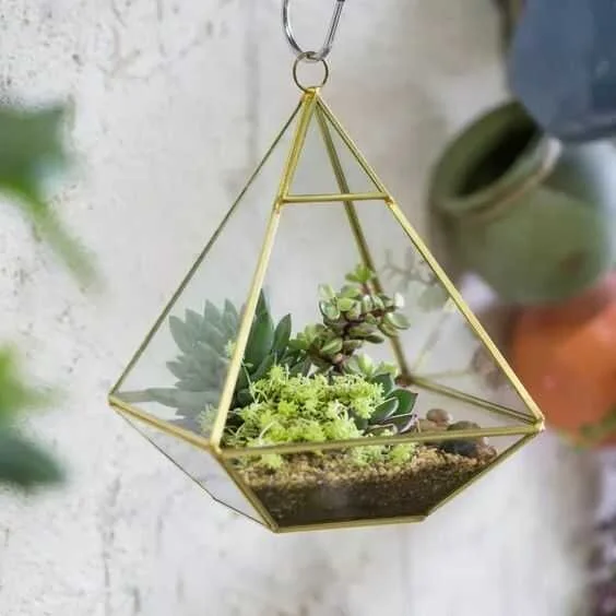 NCYP is an Etsy botanical shop with other 25,000 sales. They sell gorgeous geometric glass terrariums such as this hanging pyramid.