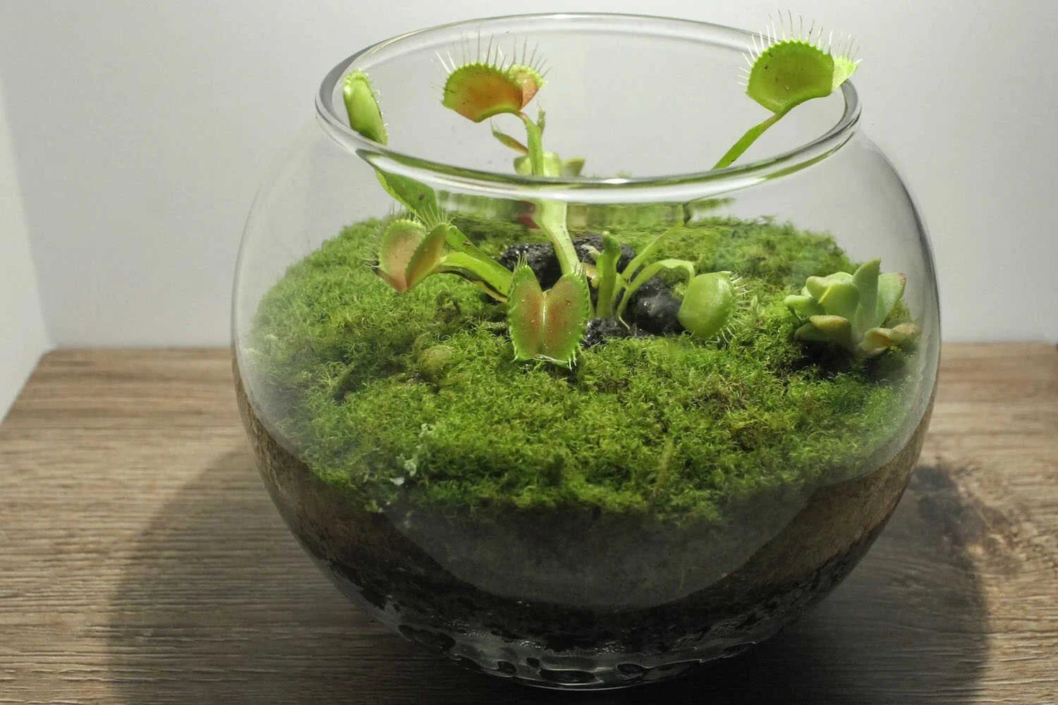Add a fun twist to your terrarium with fun carnivorous plants. These plants actually do eat bugs! I have several Venus fly trap plants and when you lightly stimulate their finger-like fibers they will think thereβs an insect and they will actually close up in front of your eyes!