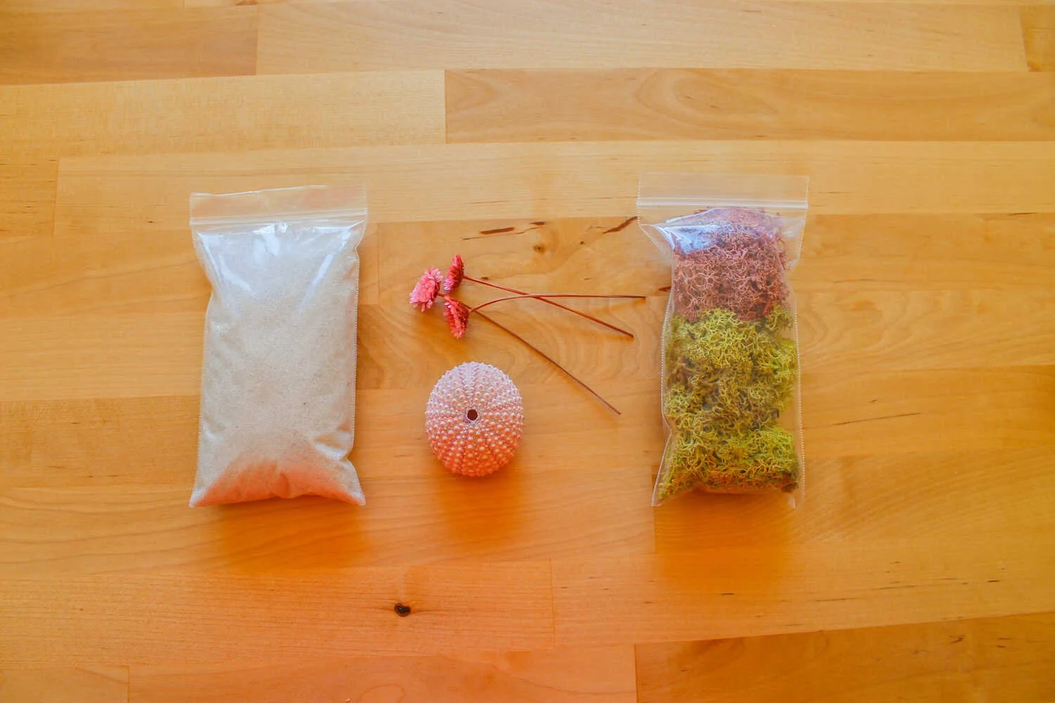 Add a girly touch with a sea urchin shell and pink moss with the Pretty Pink Countryside Kit.