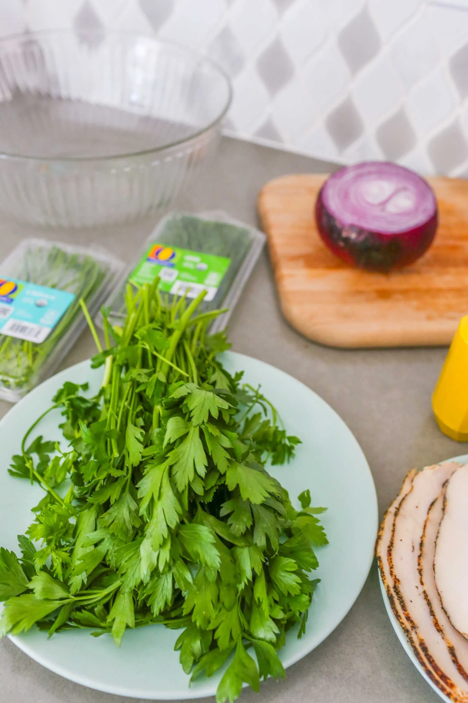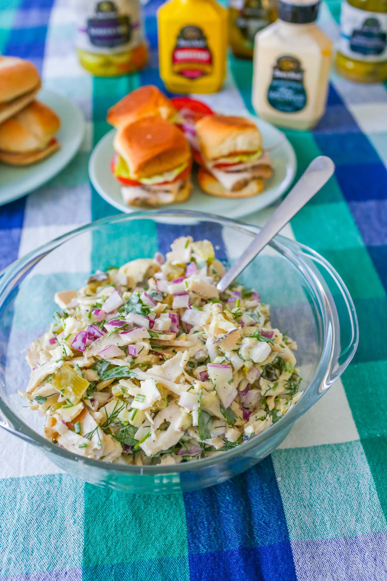 Chicken salad stands as a quintessential American side dish, but this recipe adds a bit more pizzaz to your average humdrum chicken salad. It features a trio of fresh herbs, two contrasting yet complimentary flavors of pickles, and premium condiments. All these ingredients combined make for a dish filled with aromatic flavors.