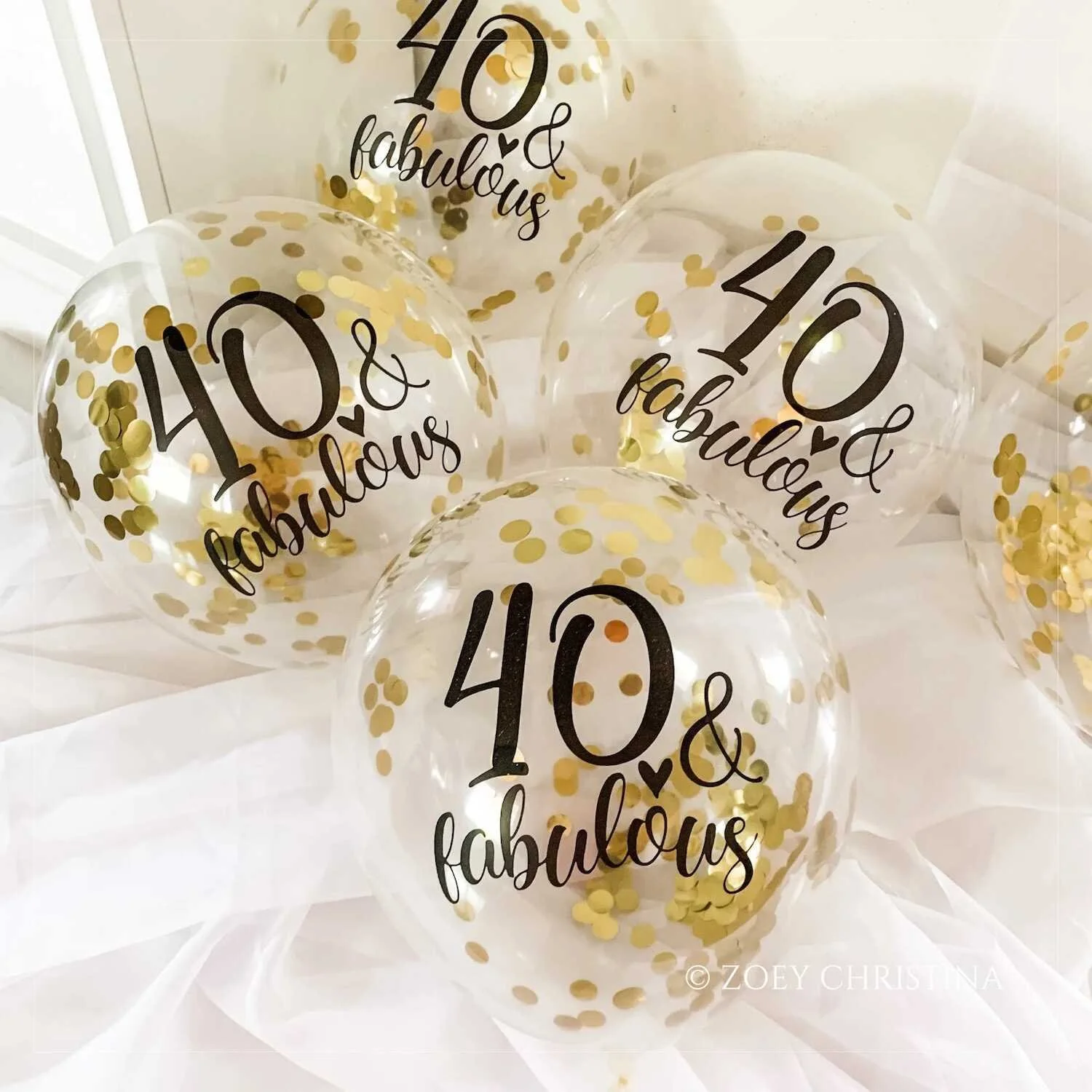 40th birthday themed balloons come in all shapes and sizes. Top choices include confetti balloons and 4-0 numbers balloons.