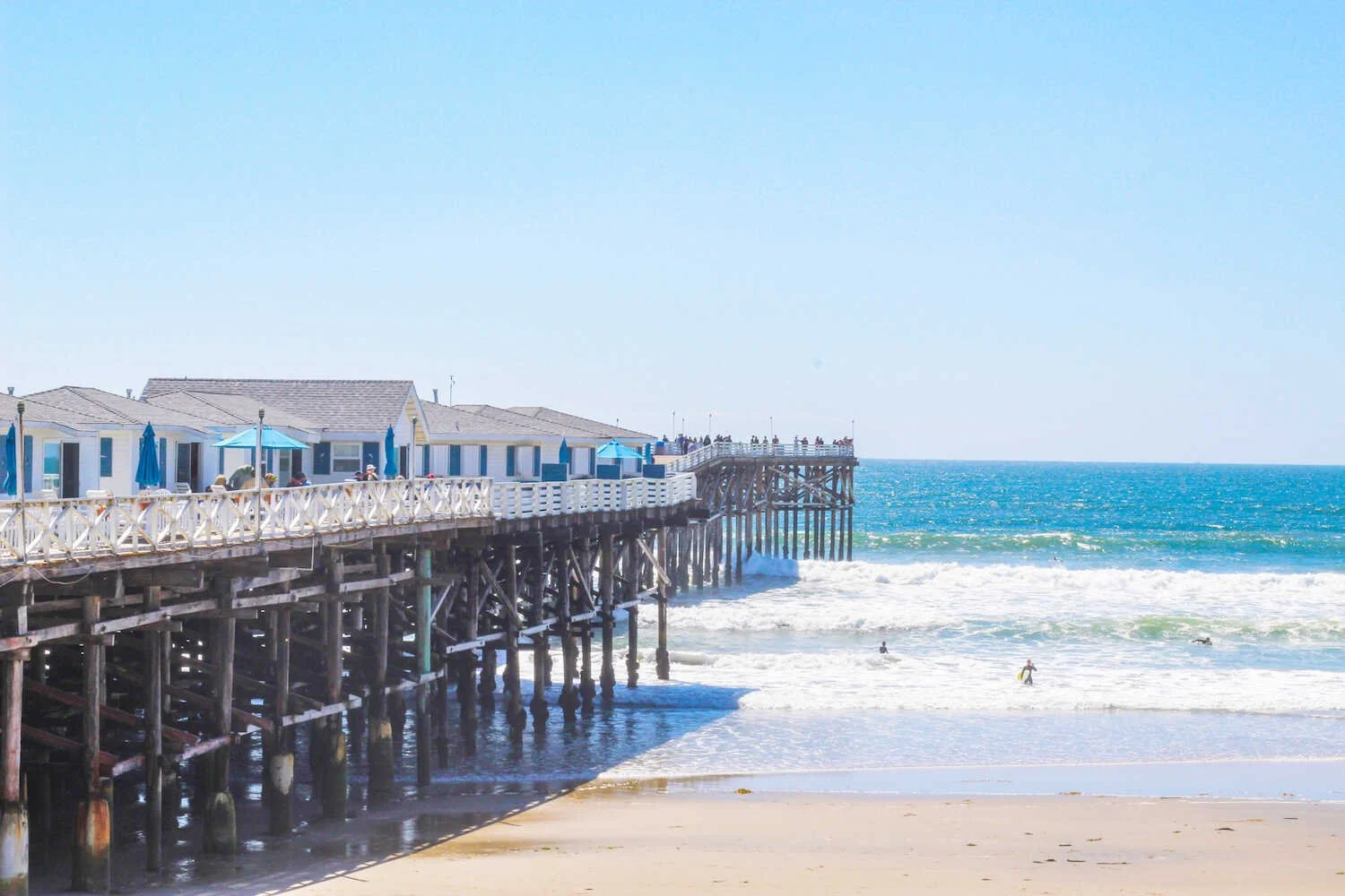 Crystal Pier in Pacific Beach is a long pier open to the public. You can walk all the way to the end and see sweeping views of the Pacific Ocean. Another great spot for sunset photos!