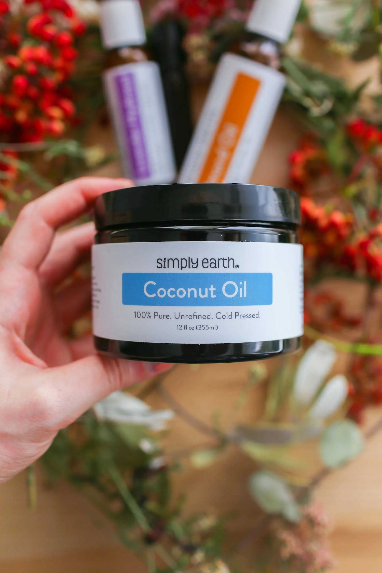 My Bonus Box from Simply Earth came with 3 full-sized containers of popular carrier oils. While these are ingredients for recipes, they also can be used on their own. For an afternoon pick-me-up, I like to rub essential oil infused coconut oil on my hands and arms (almond oil works well too). I cup my hands over my mouth and nose and take deeps breaths to inhale the oils.