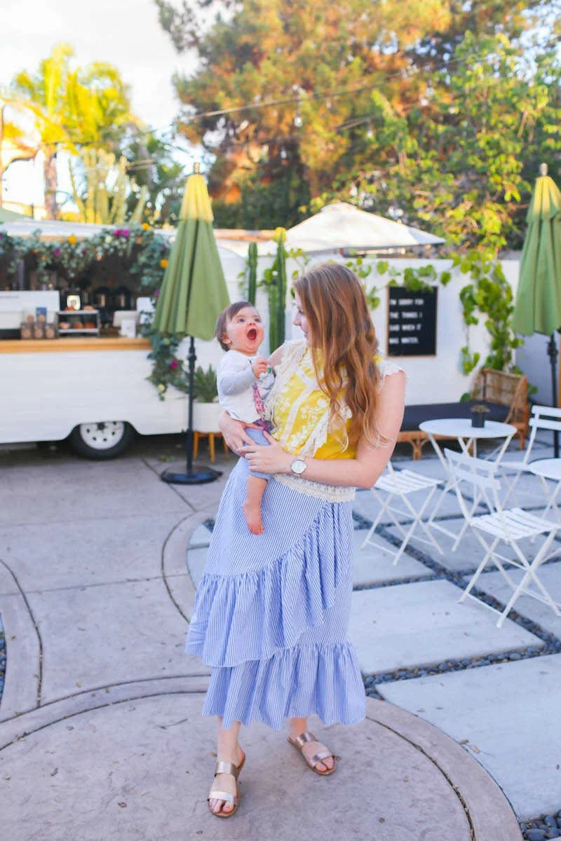 As general tips for visiting any warm and sunny destination with a baby, try to avoid being outside during peak heat and sunlight. We usually head out in the morning to enjoy a walk and brunch, spend the middle of the day indoors, and then head outside again in the late afternoon/early evening.