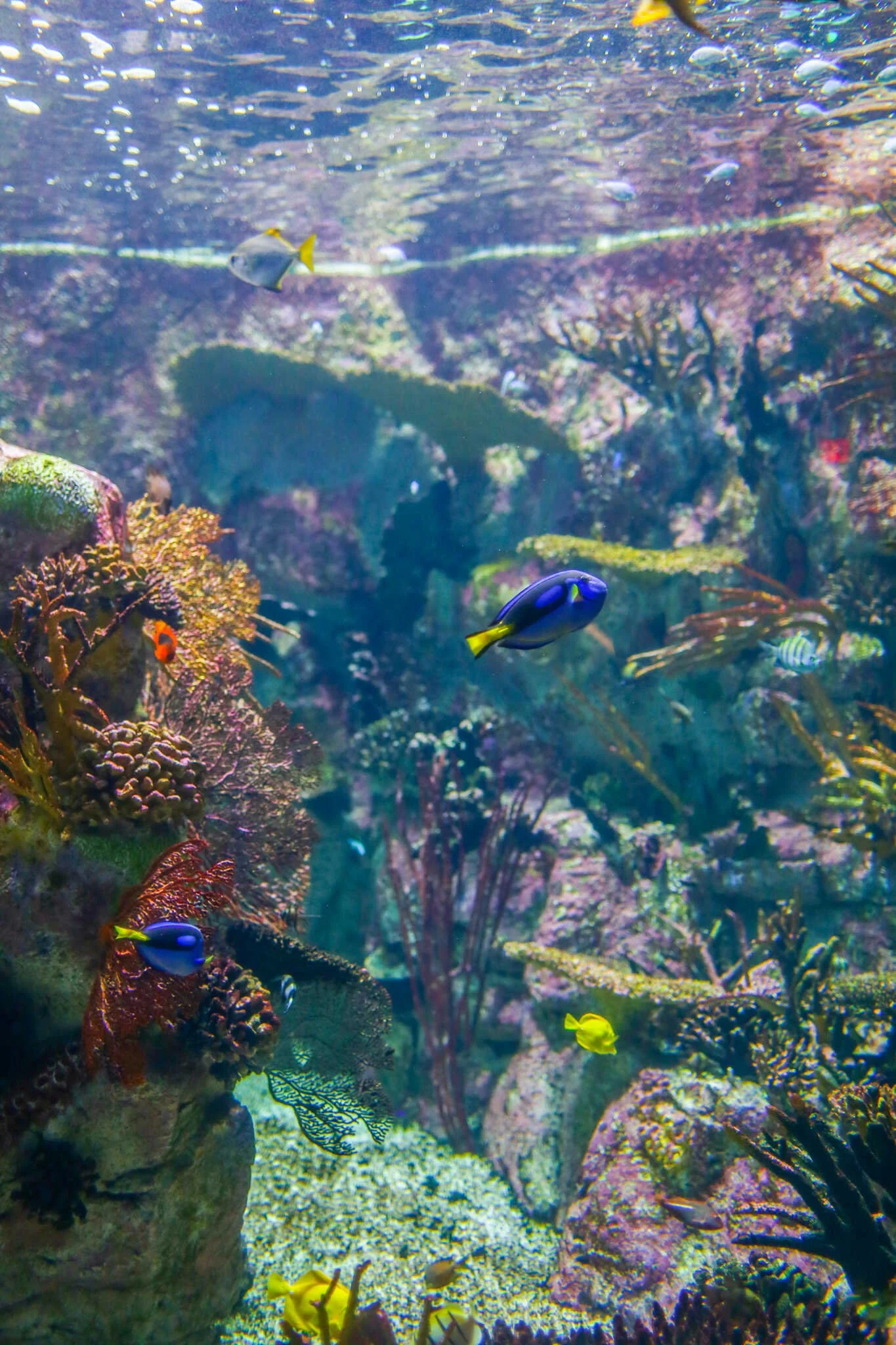 We took the kids to Birch Aquarium when my daughter was two years old and my just was just a few months old. The aquarium is located in La Jolla adjacent to the ocean and they have beautiful sweeping views of the Pacific Ocean. They have a great curation of ocean life including colorful tropical fish, jellyfish, octopus, sea horses and more.