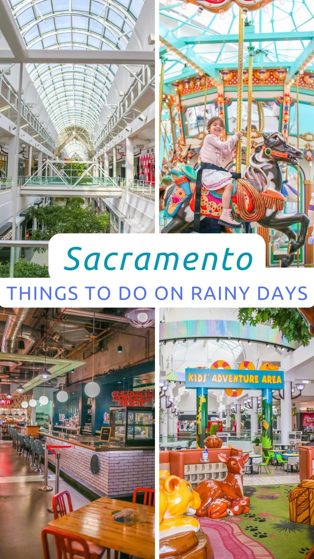 One of our go-to places for rainy days (and super hot days) is heading to Arden Fair Mall. This state of the art indoor shopping center has a carousel, plenty of shopping and food options. There’s also a kids only zone with climbing structures and fun animals. While i't’s not super fancy, our kids always have fun.
