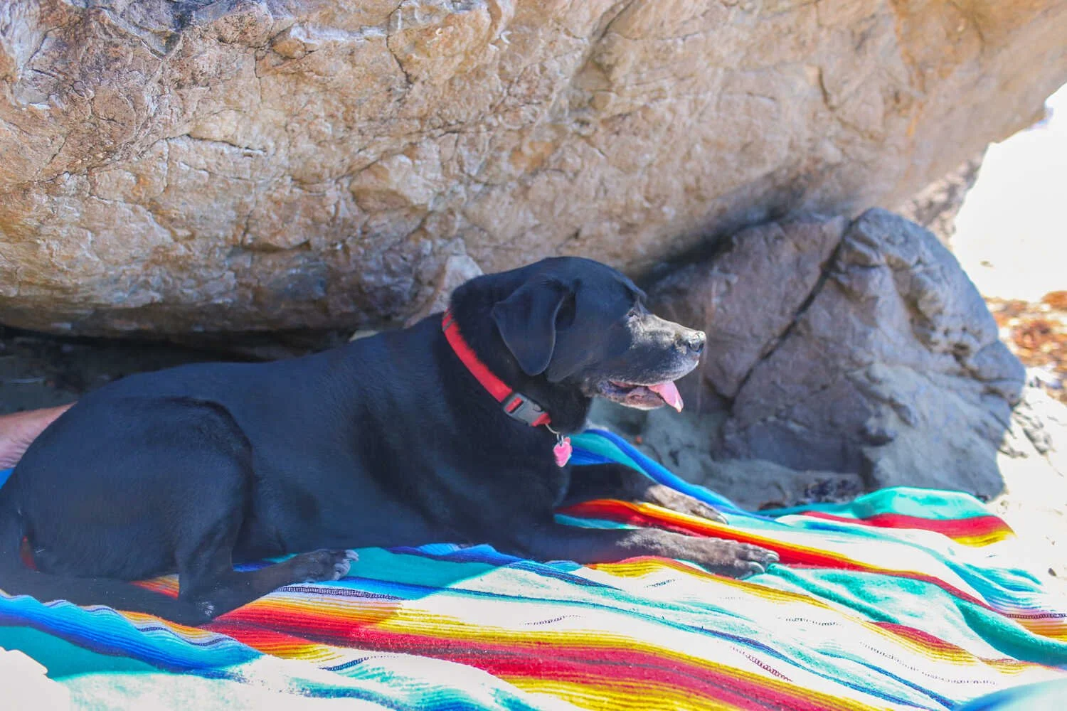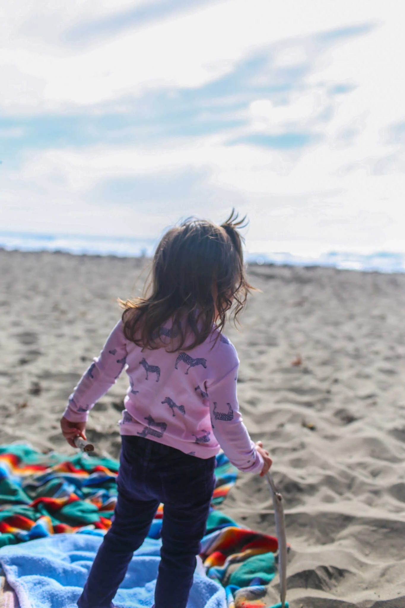 We have a collection of serape blankets that we always take with us to the beach. They are comfy to lay on and easy to wash in the washing machine after a beach day.