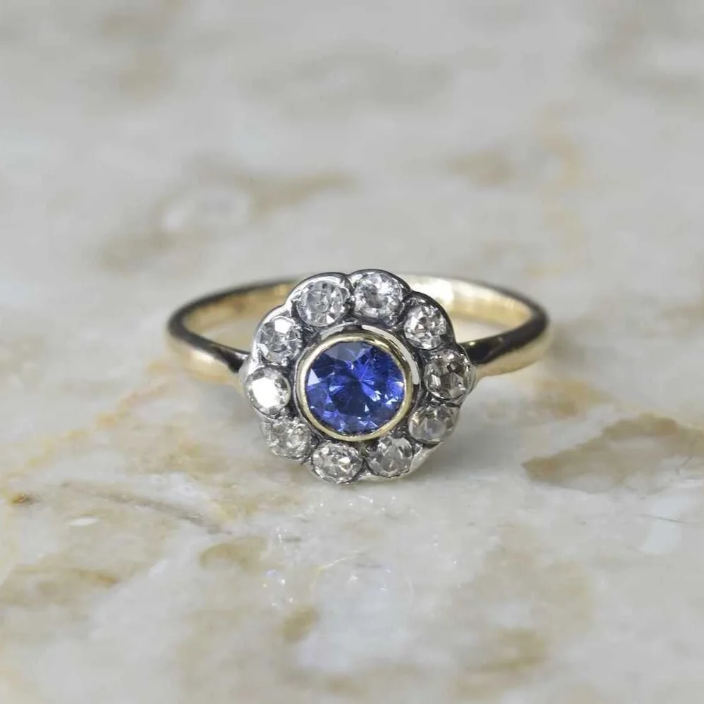 An engagement ring placement with a diamond and sapphire gemstone combo is truly a classic. This brilliant duo dates back many decades and you can find some incredible antique art deco designs.