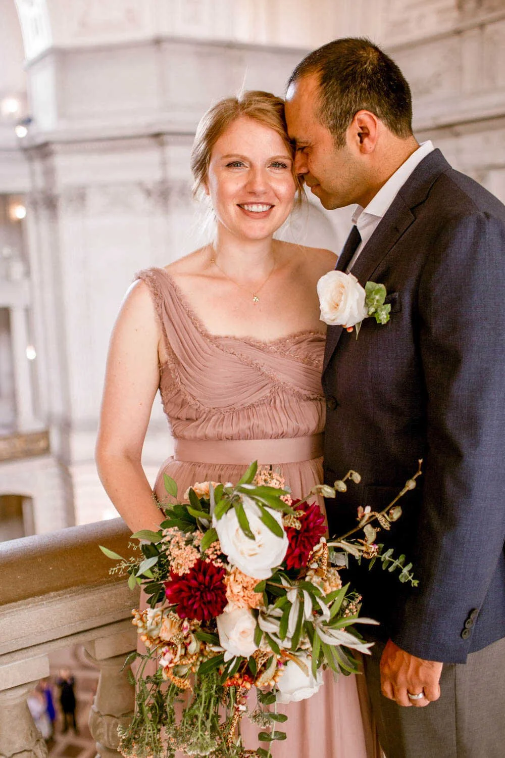 When my husband and I got engaged, I knew I wouldnβt be a traditional bride. For our nuptials we threw all the traditional rules out the window and eloped in San Francisco. My bride style was very much boho inspired and I wore a blush pink wedding dress.