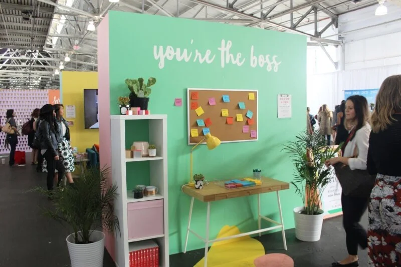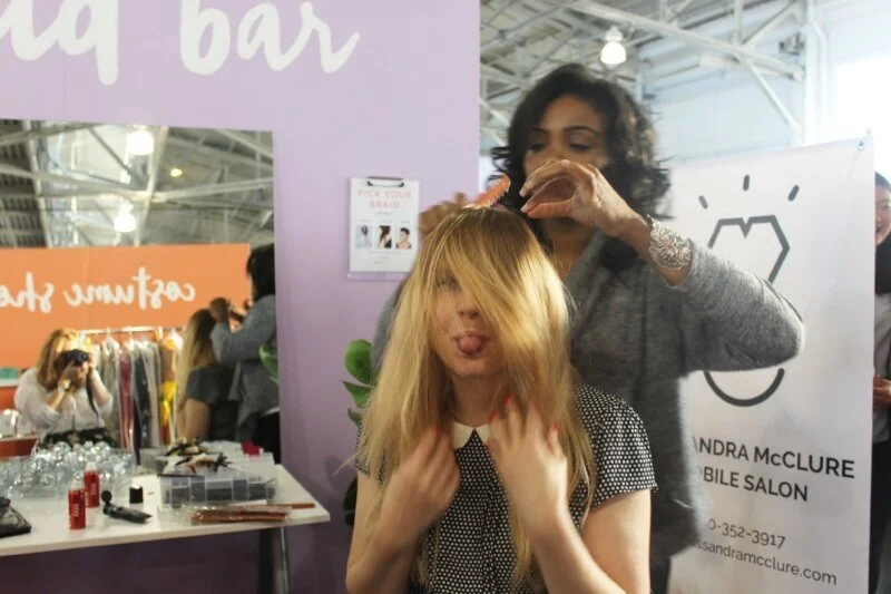 One thing you will notice in all these pics is an explosion of color! Brit + Co is not afraid of using bright and bold hues to adorn every nook and cranny of their events. Along with the colors and decor, there was a vibrant energy among the attendees. There were so many people to chat with, activities to join and of coursing a ton of crafting. Highlights of the day included a book signing with Sophia Amoruso, a catwalk competition with Tyra Banks and getting my hair braided into a crown at the Braid Bar (see our mini end of day photoshoot below).