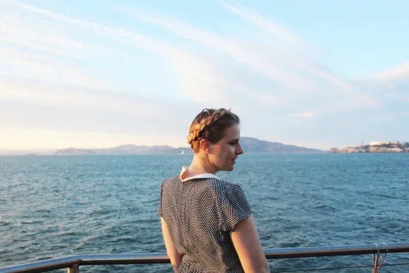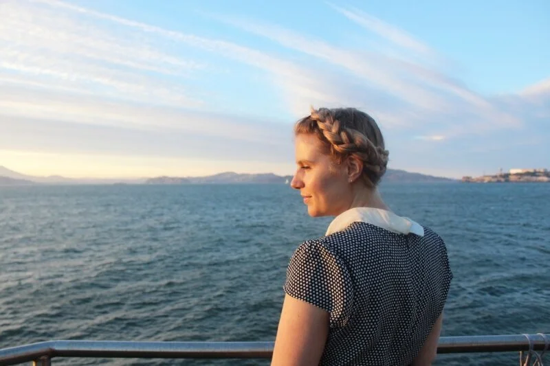 As I mentioned earlier, one of my favorite parts of the conference was hanging with the stylists at the braid bar. I've been wanting a braid crown for many months now but felt too intimidated to try it myself. The summit took place at the Fort Mason docks giving us a beautiful view of the Golden Gate Bridge on our way home. After a long day of fun and inspiration, watching a San Francisco sunset was the perfect end to a great day.