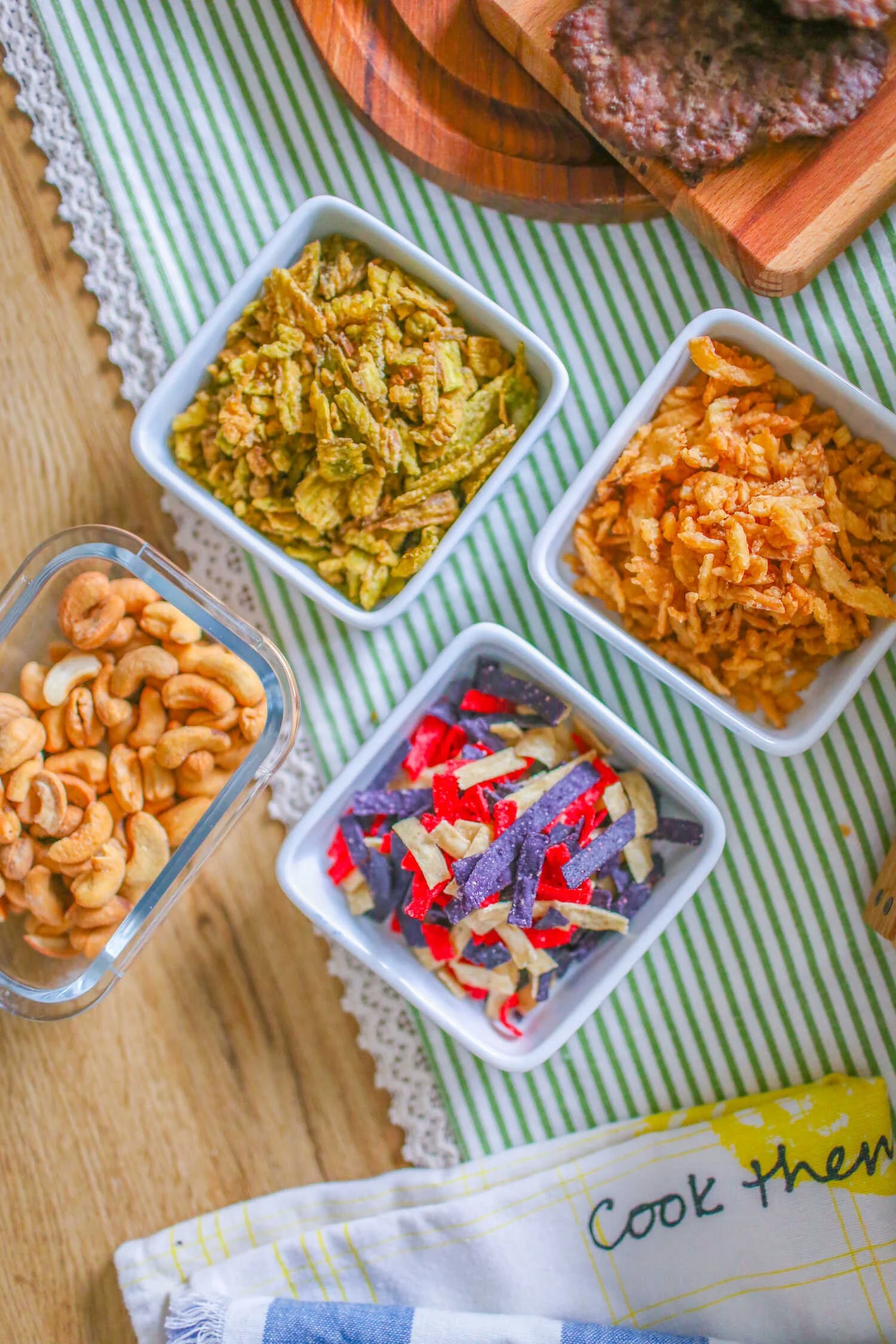 I like to add an extra crunch to my burger with little fried toppings. These also double as side salad toppings too.