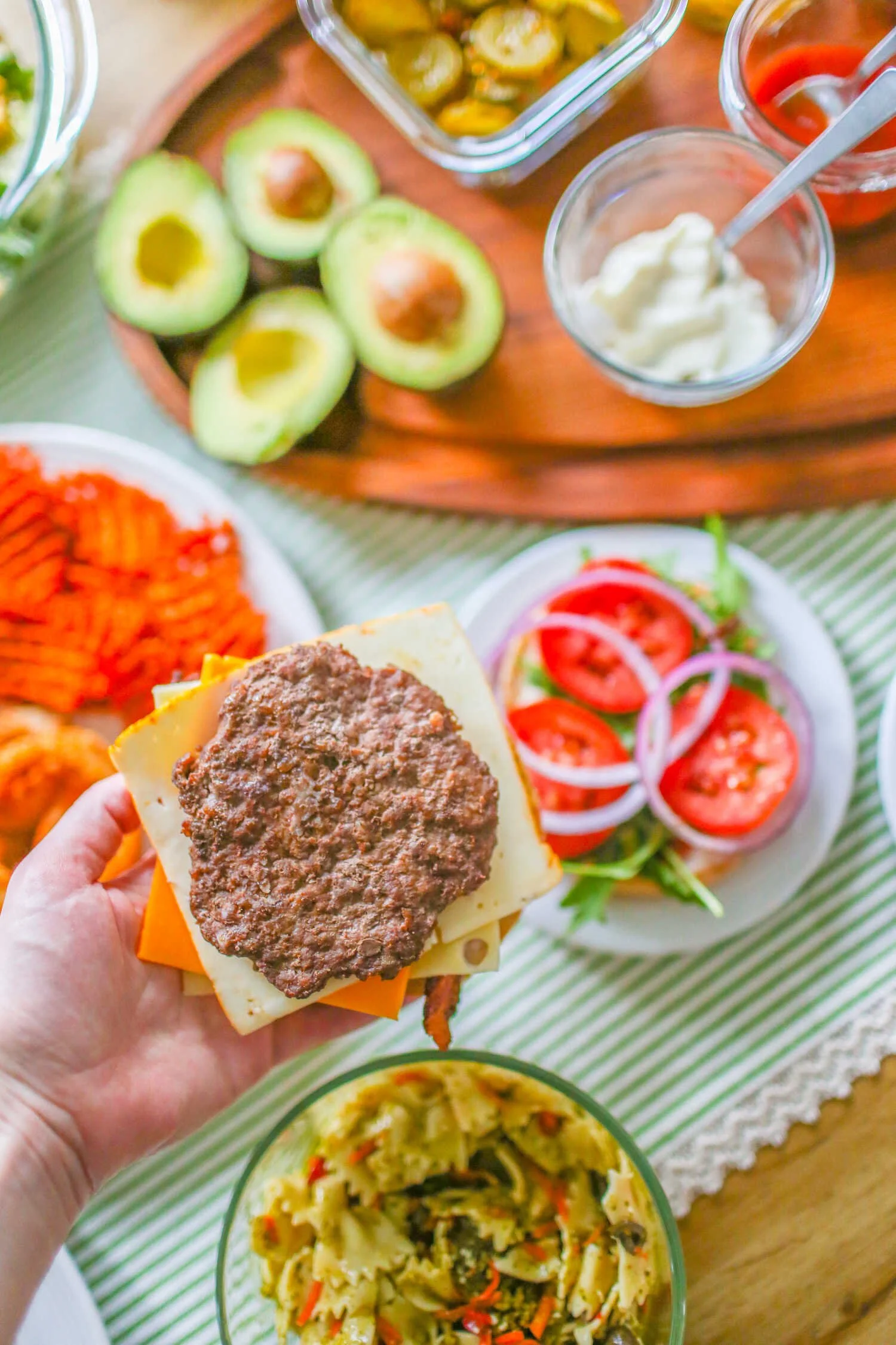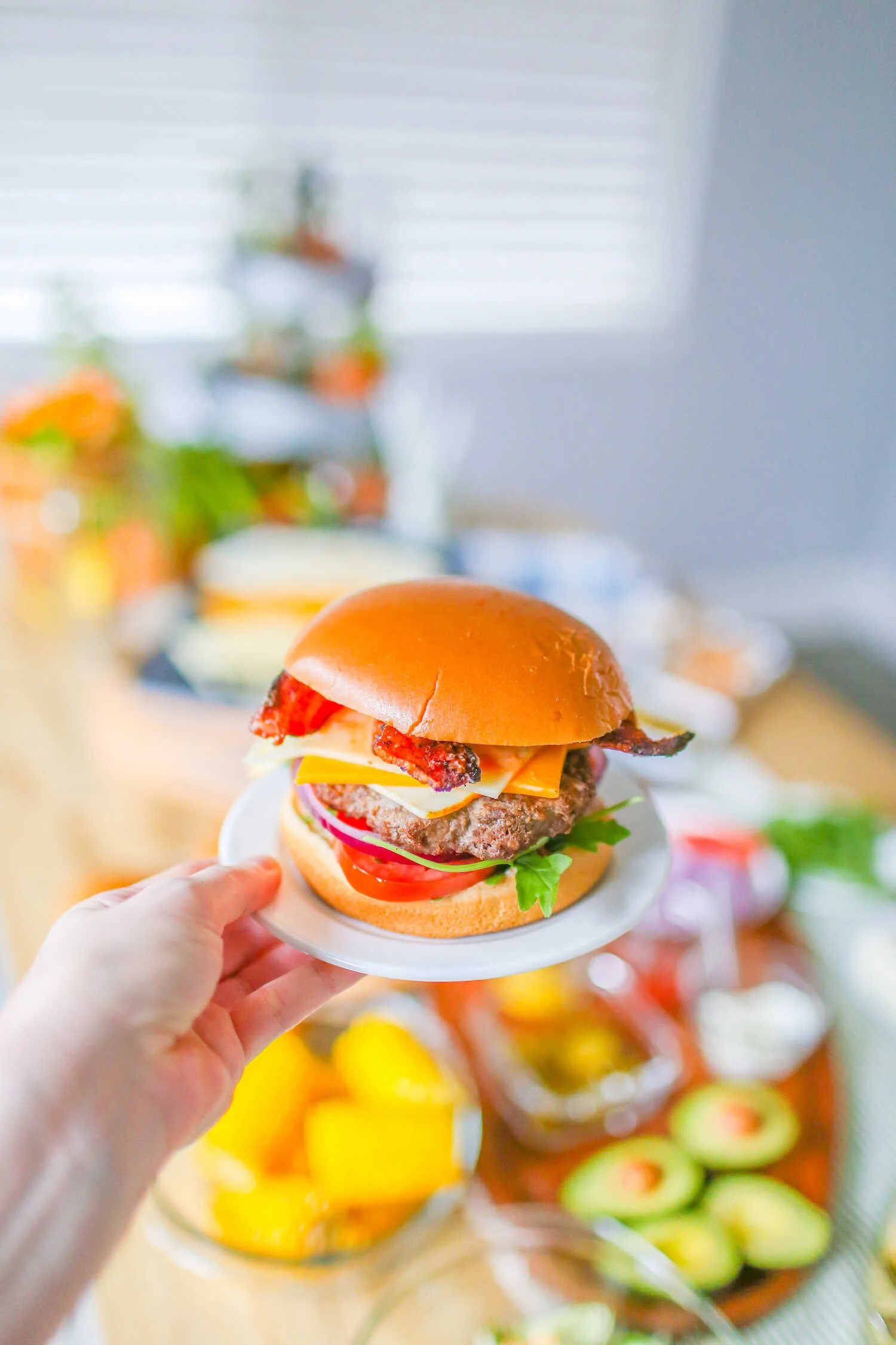 For the sake of uniformity and presentation, I like to use pre-made burger patties as opposed to starting with ground beef. Not to mention that itβs so much easier for yourself as the hostess and youβll have more time to focus on fun toppings.