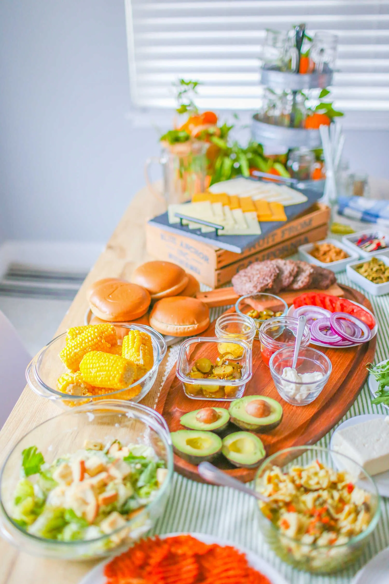 The beauty of the burger bar is that all your friends and family can customize their burger with all their favorite toppings while easily omitting their dislikes. When you add in all the extra side dish options, youβve really got meal options for all ages and taste buds.