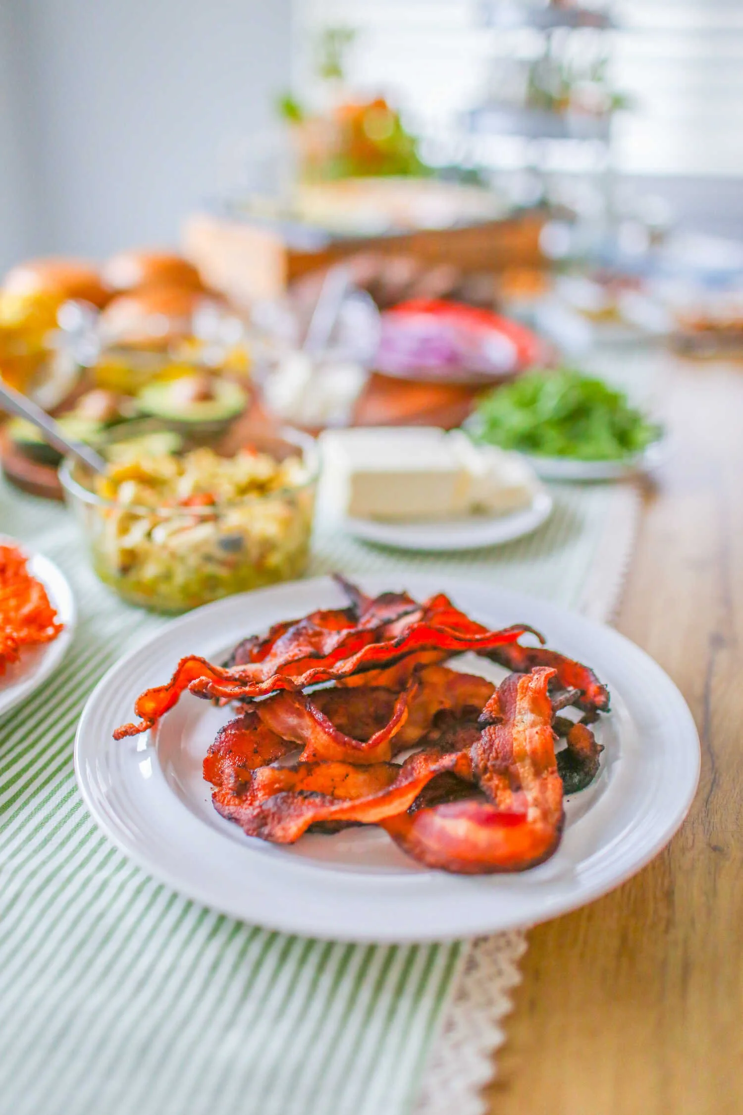 The crisp and cool addition of fresh veggies to a burger is an essential part of the harmonious burger stack. Not to mention that all the diverse colors really brighten up your burger bar table and make it look extra inviting.