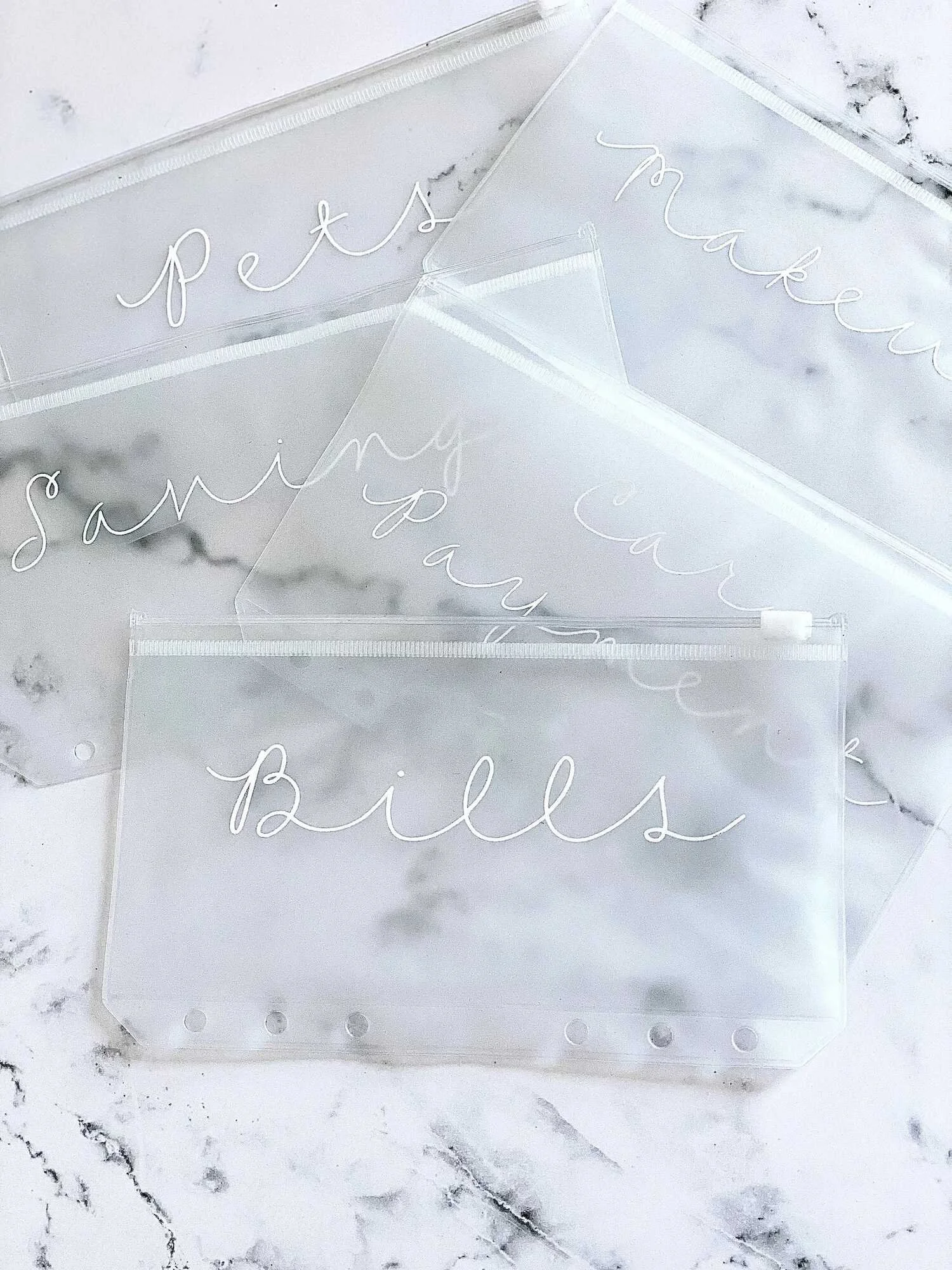 Once you’ve got your A6 binder, you’ll need these super convenient envelopes that are made to perfectly fit cash bills. You can get them customized with any label you want. These are also great for fun saving challenges!