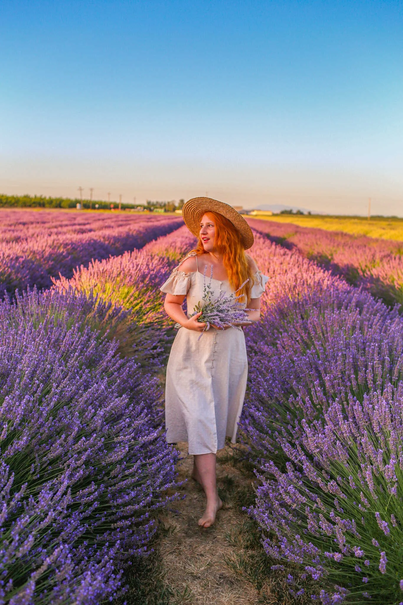 The purple colors in the lavender fields tend to be a bit subtle in photos. So we all wore neutral white dresses so to not compete with the blooming lavender flowers. You could also wear light pastel shades such as baby blue, light pink or a soft yellow.