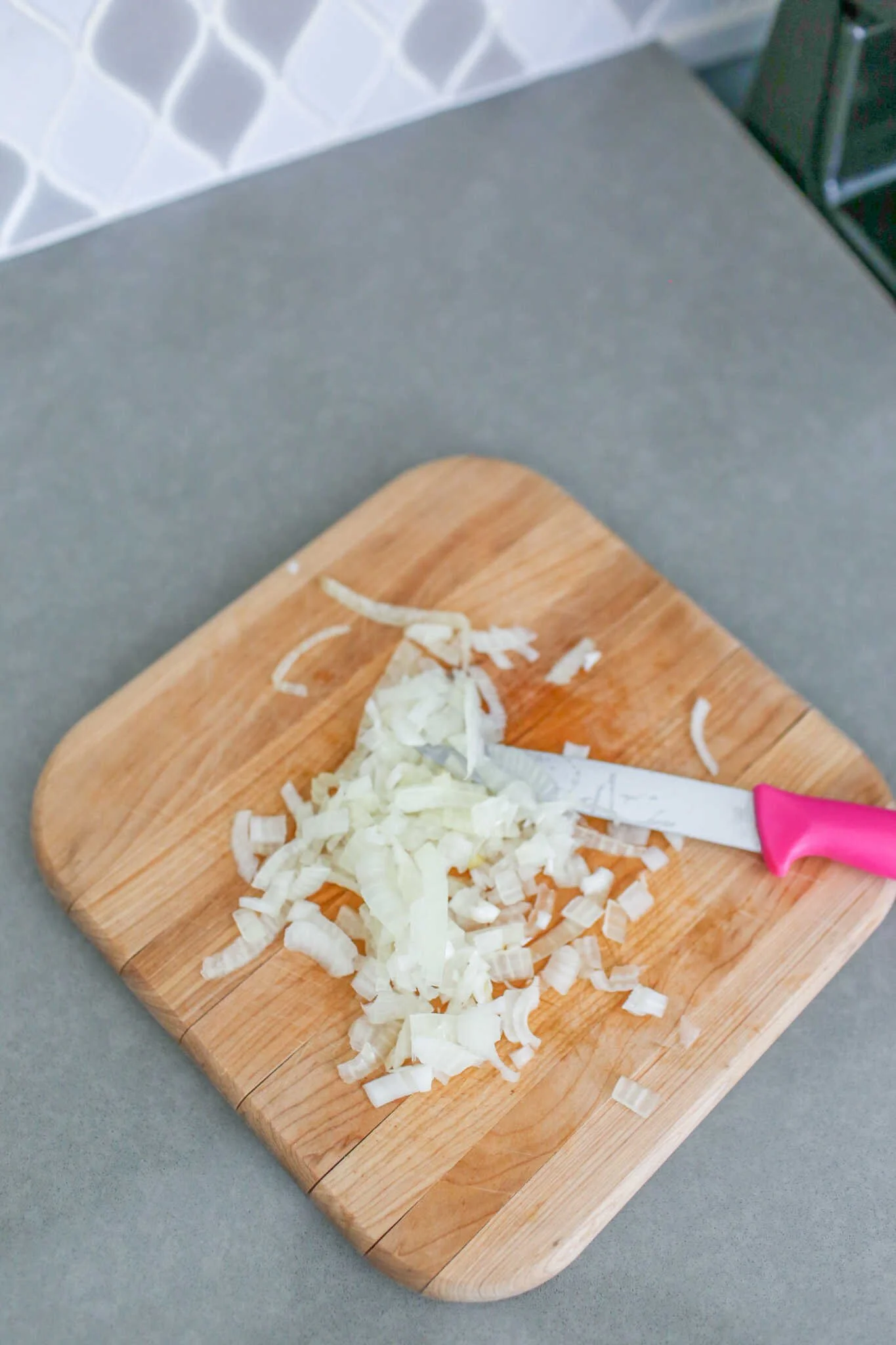 Cut up your onion, cherry tomatoes and celery into small cubes. Set aside.
