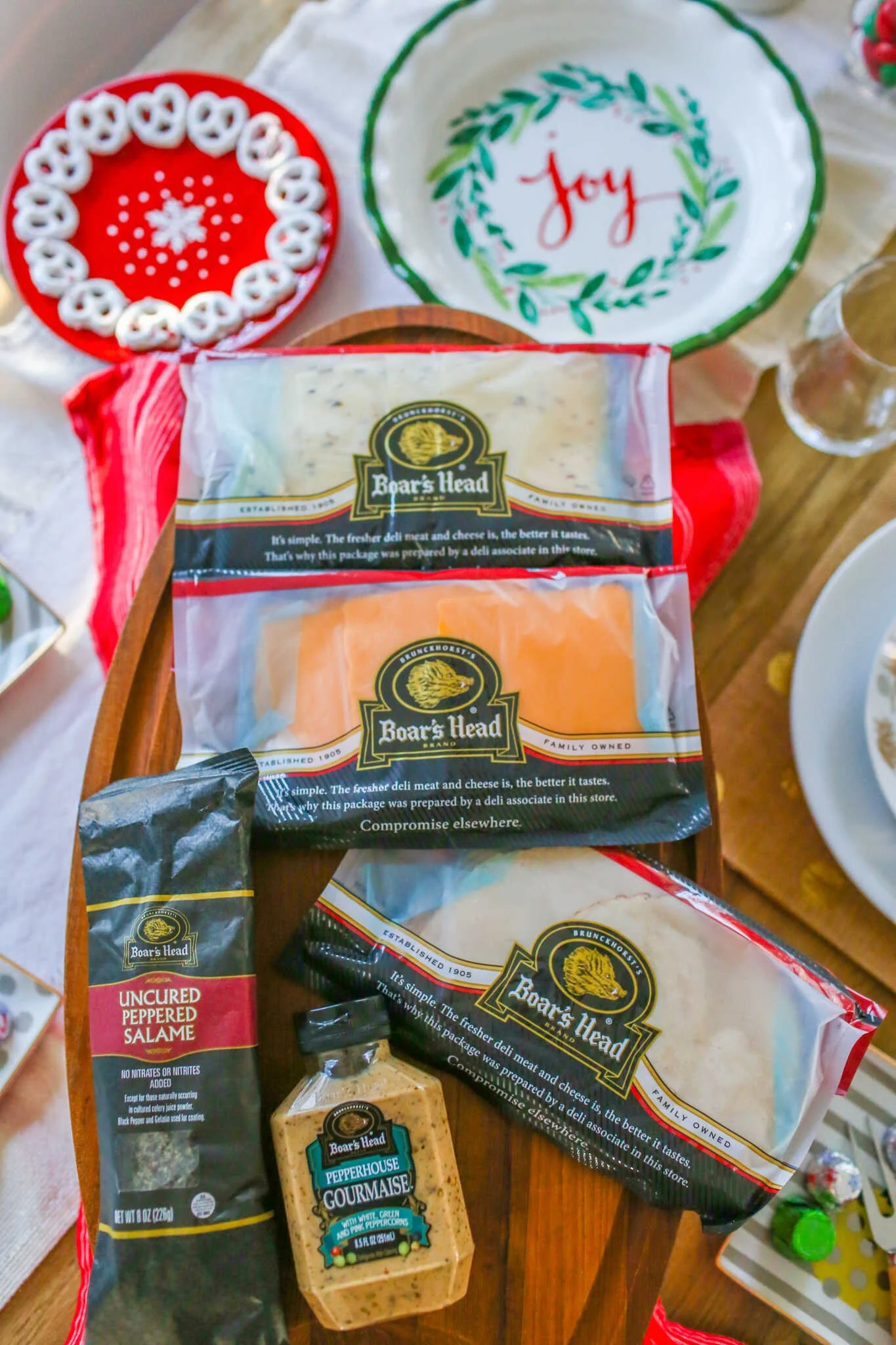 The best way to ensure your guests will enjoy eating tidbits from your charcuterie board is to use the highest quality food ingredients. My go-to brand for meats and cheeses is Boarβs Head which can be found in most local Safeway grocery stores. Boarβs Head is a premium family-owned supplier of delicatessen meats and cheeses, and you can really taste the difference in quality in their products. I also really love their spreadable condiments, which I provide for guests as an extra layer of flavor on their sliced bread.