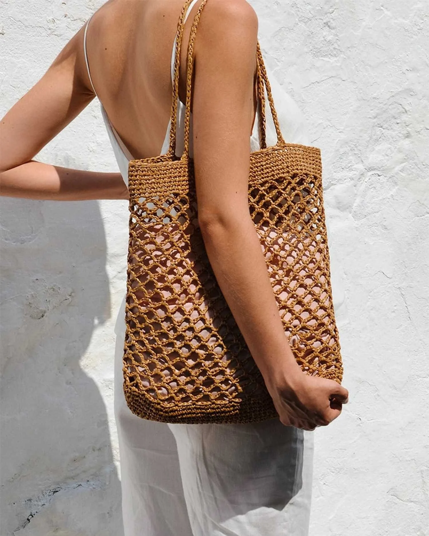 Open-weave totes made of raffia are all the rage for summer trips. Theyβre lightweight and have those beachy vibes. Throw in all your summer essentials and head to the beach!
