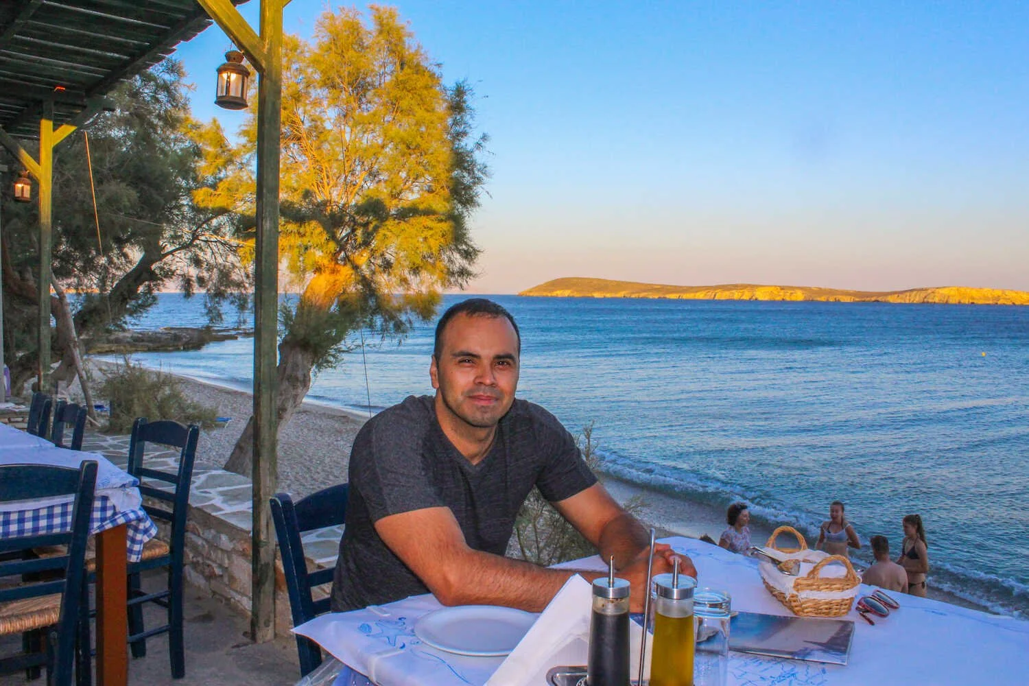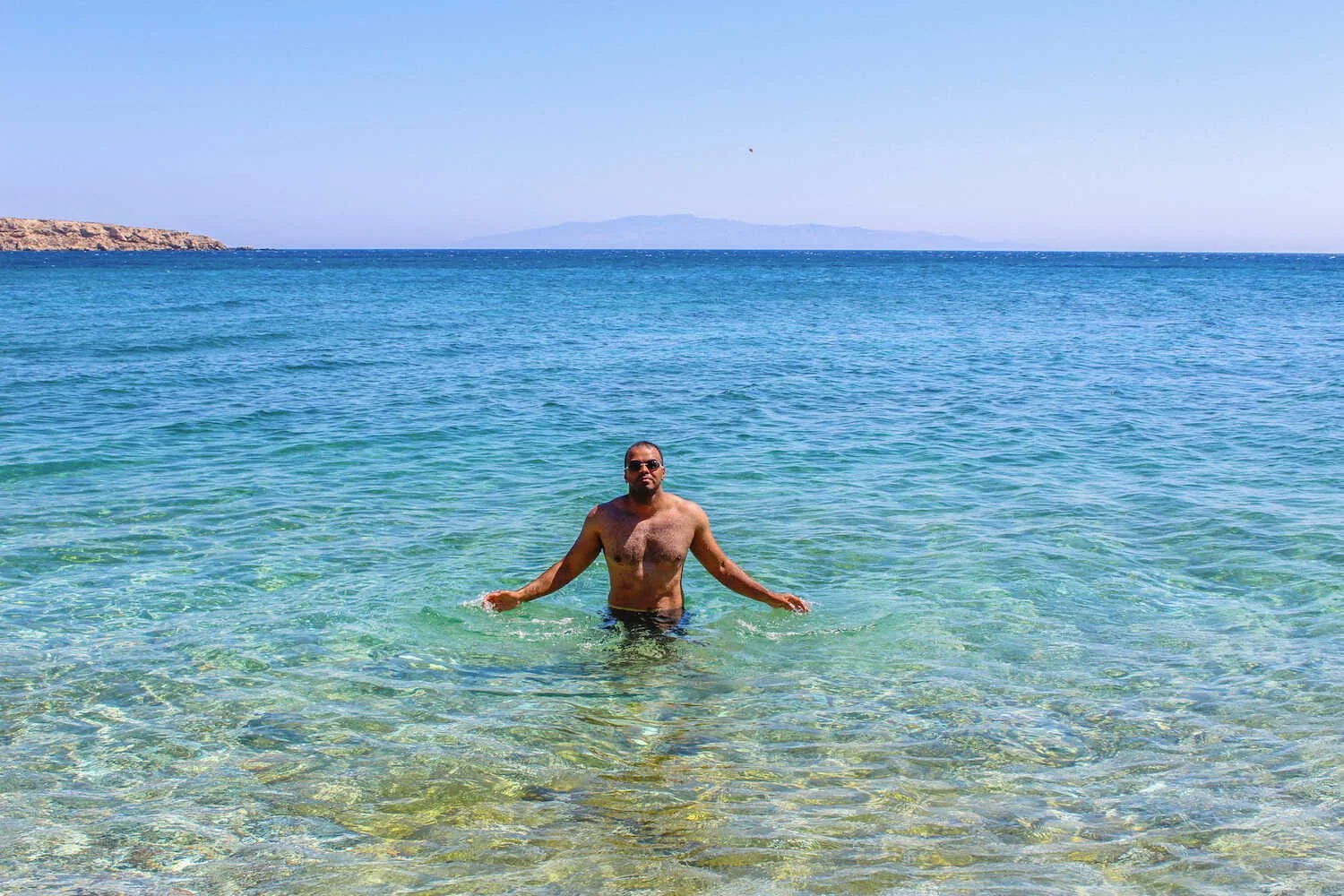 My husband and I traveled through the Greek islands for 10 days in the month of July. While we did see crowds when we stayed in Santoriniβs Oia, the rest of the trip we went island hopping and hardly saw any other people. We would swim and float for hours in crystal blue waters during the daytime. And then wind down for the day with long outdoor sunset dinners with ocean views.
