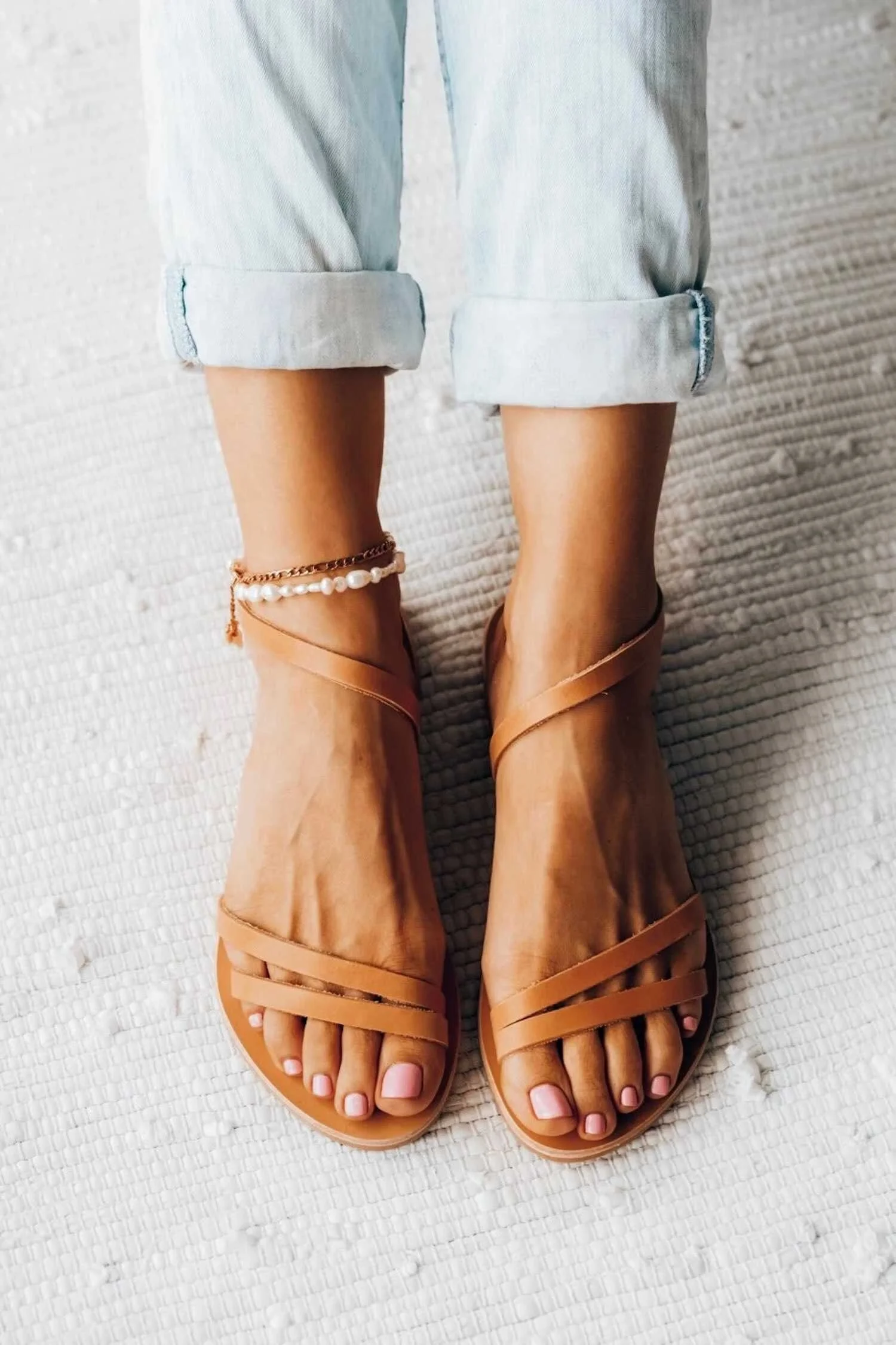 Let your Greek vacation surroundings influence your summer style and invest in a pair of real leather strappy sandals. This trendy wardrobe staple comes back year after year so youβll be wearing them every warm weather season.