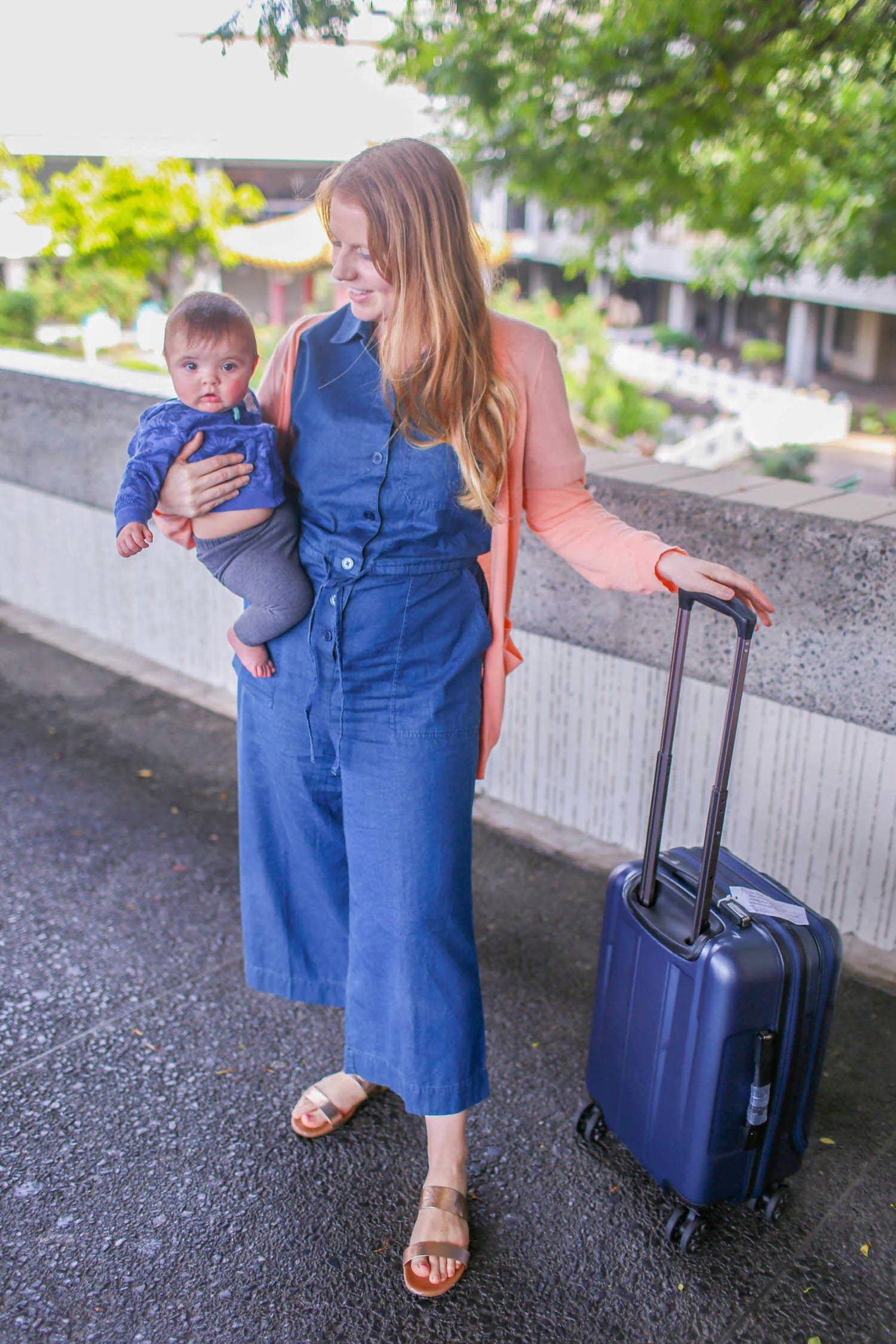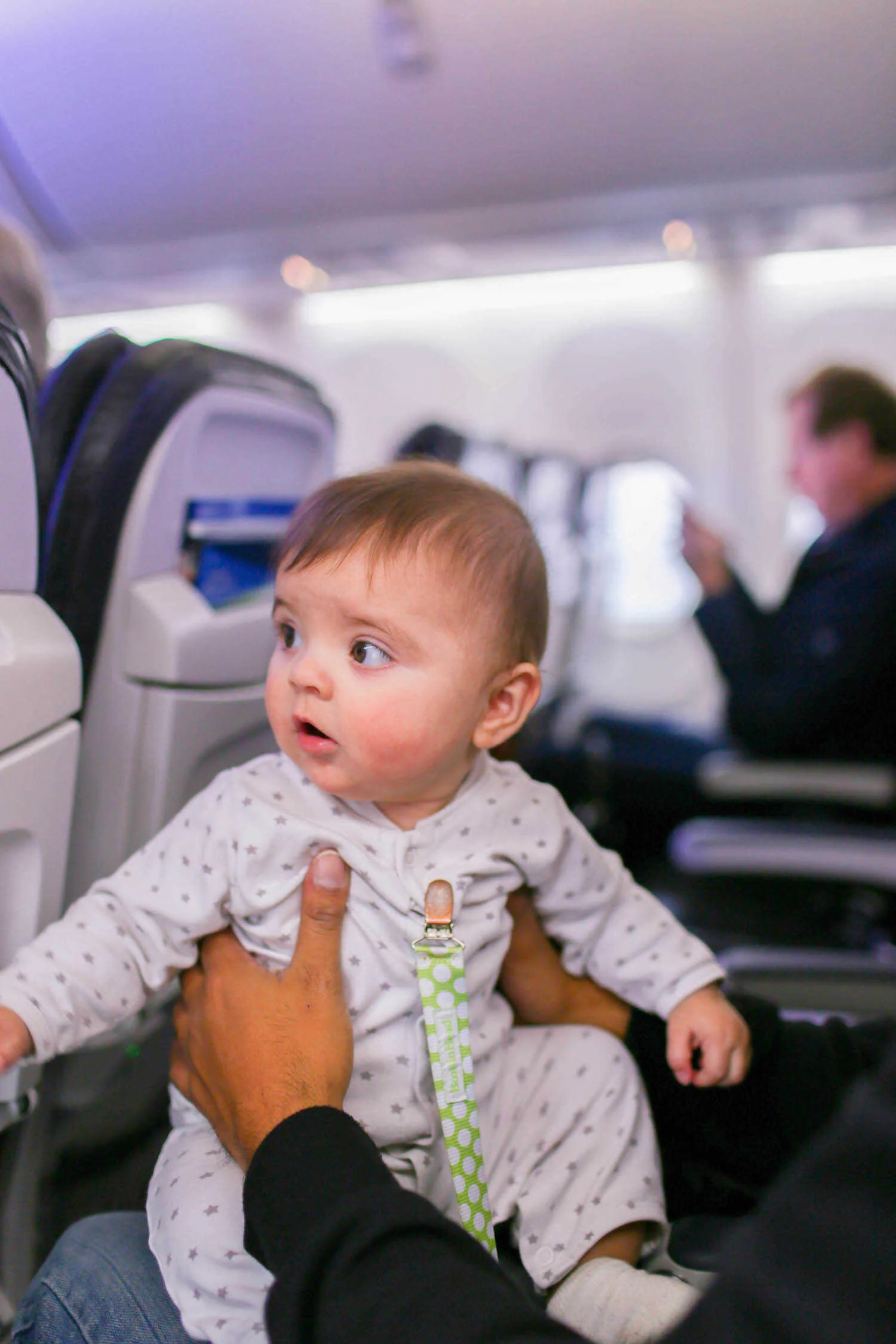 I know a lot of parents worry about their baby being really fussy on a plane and disturbing the other passengers. But the reality was that most people were really sweet and accommodating during our travels. We were lucky that Scout didnβt cry hardly at all, and most of that was due to the fact that we came prepared with a fully-stocked diaper bag.