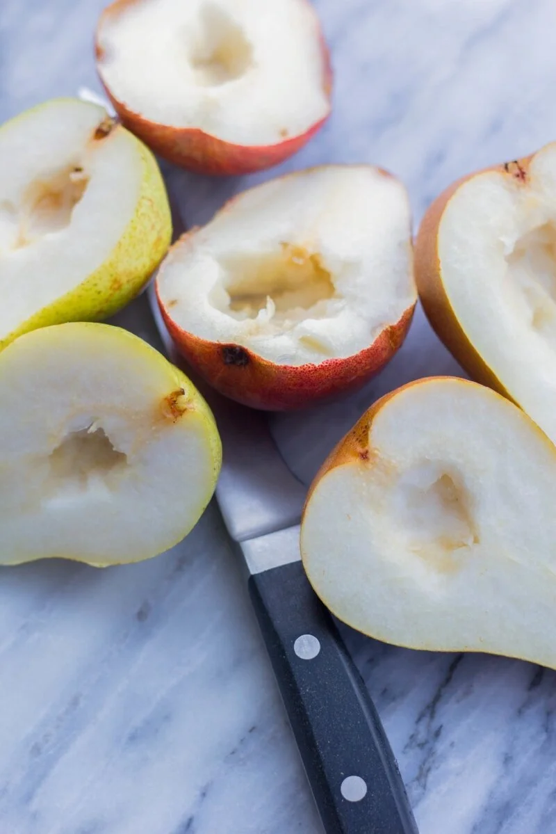 3 ripe pears. I experimented with Bosc, Bartlett and Red Pears. While they were all delicious, the red was my favorite.