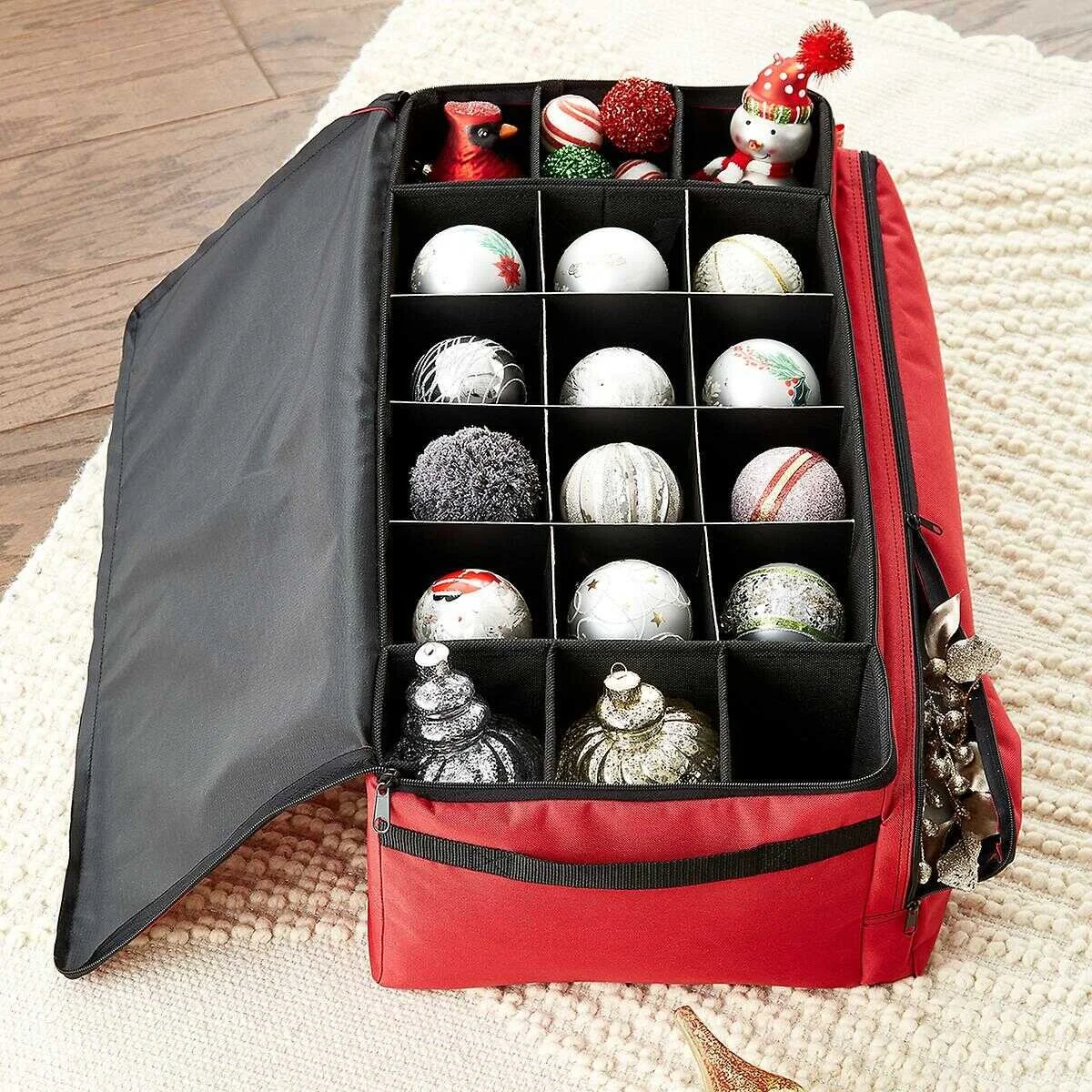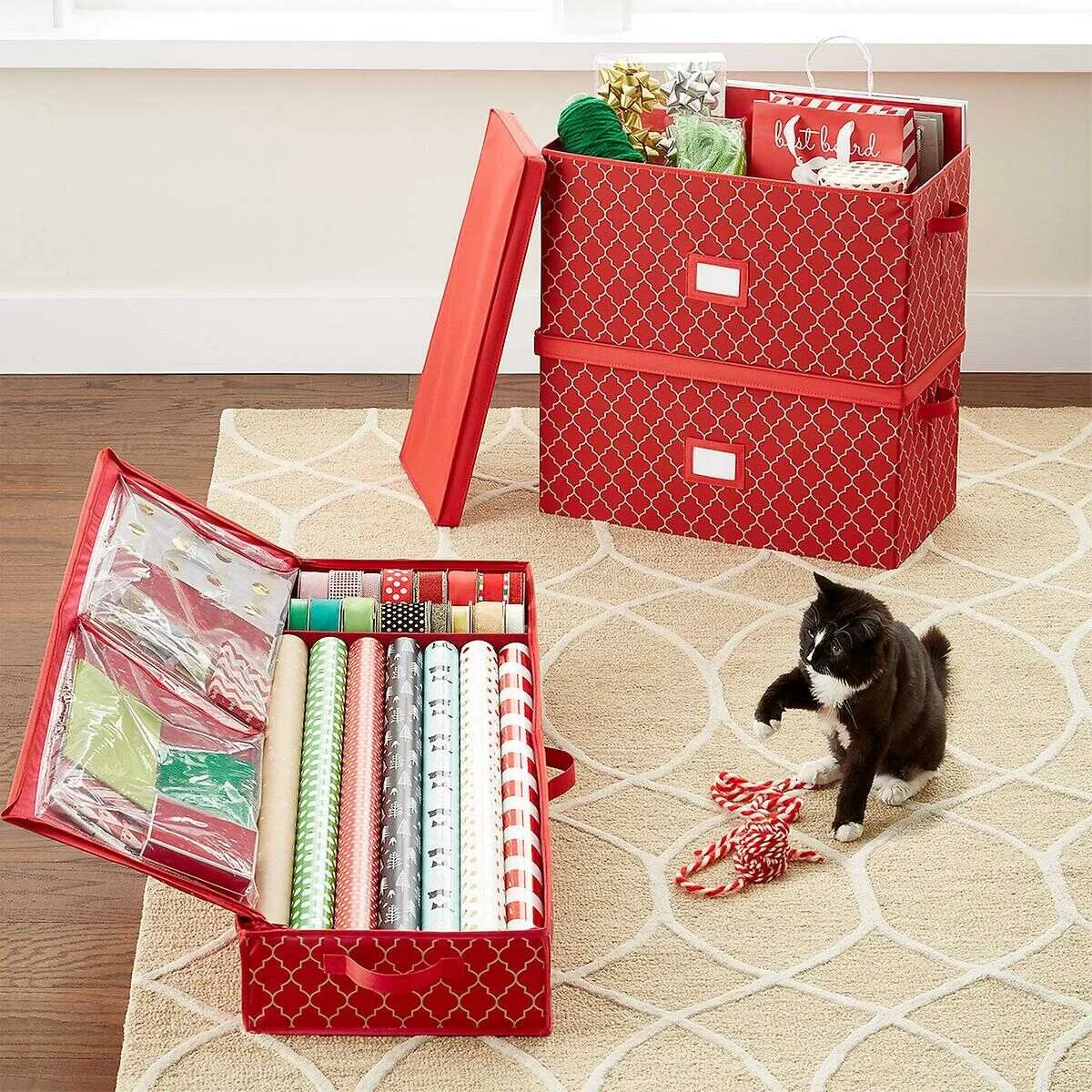 Having designated holiday storage bins along with a designated place to store them in the house makes the after Christmas clean-up much easier. Many Christmas items are either breakable or irregular shapes (or both!), so having special bins for them is crucial. Luckily you can purchase specialized holiday bins: