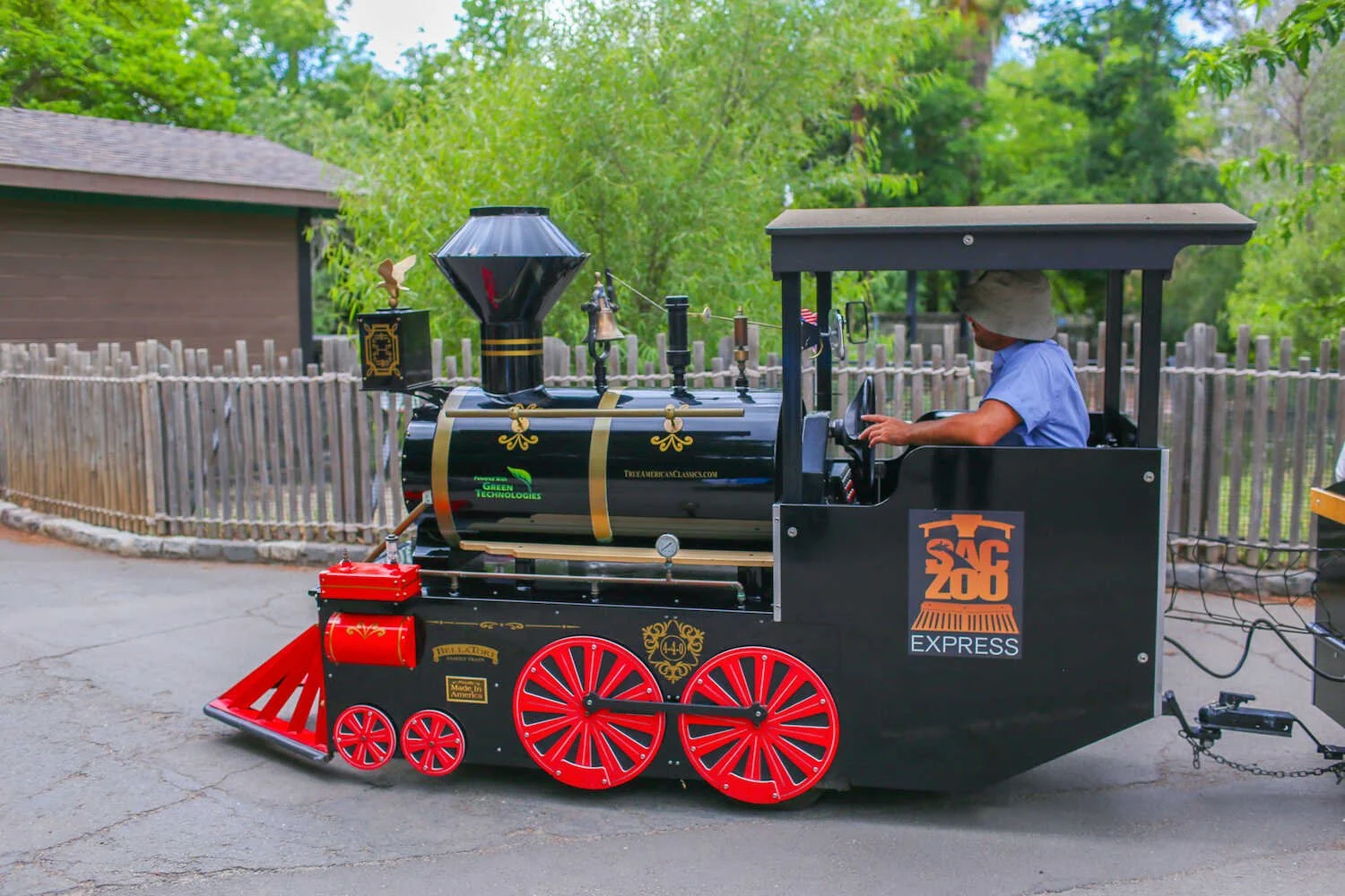 Thereβs an adorable miniature train engine that rides through the park with passengers aboard, known as the Sac Zoo Express. It makes a quick loop through the park and returns back to the depot. Adults and children can both ride inside the train car. It costs an additional $4 to ride.