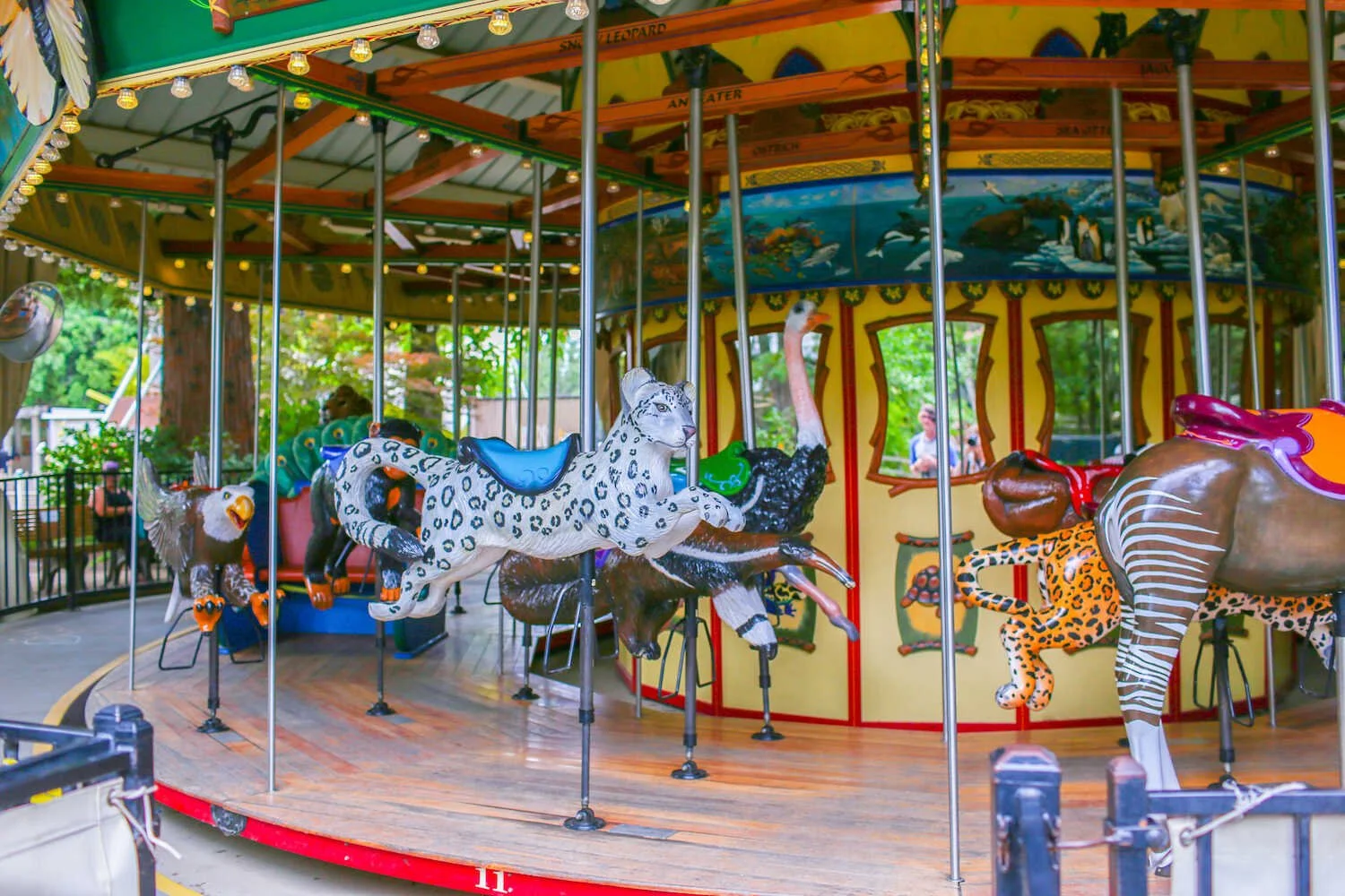 The fun part about the zoo carousel is that instead of traditional horses, the kids can pick their favorite zoo animal to ride. Thereβs 32 unique wooden carved animals, made with great detail and care. Itβs a very cute photo spot for parents to snap some pictures. Each ride costs an additional $3.