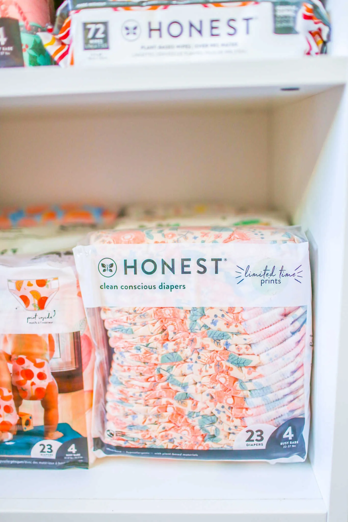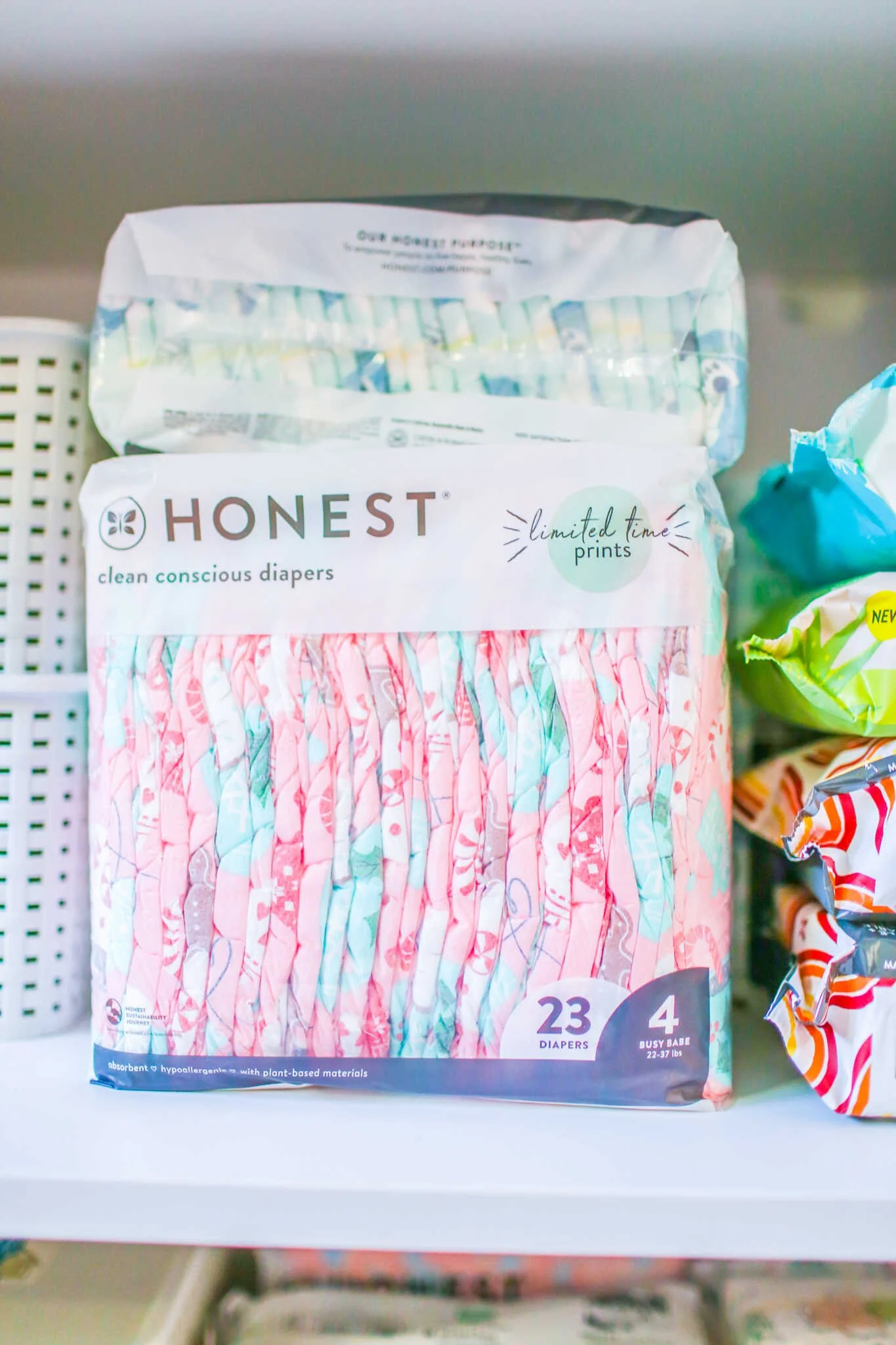 At my local drug stores the shelves can often be pretty lean in the baby aisle and diaper sizes are sometimes limited. When youβre ordering from the Honest subscription, you can feel confident that theyβll have your diaper size in-stock. Iβve never had any issues with a size being sold out.