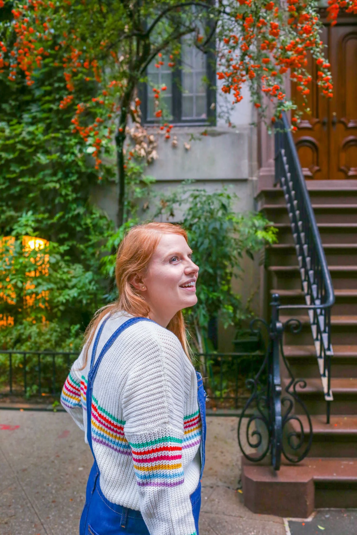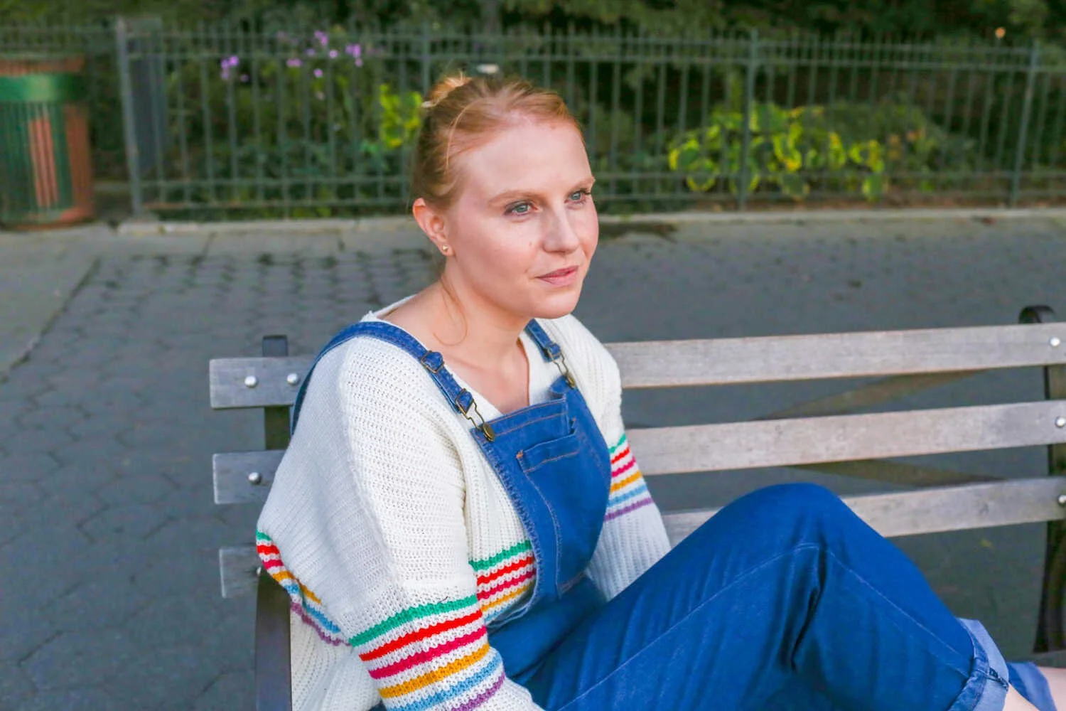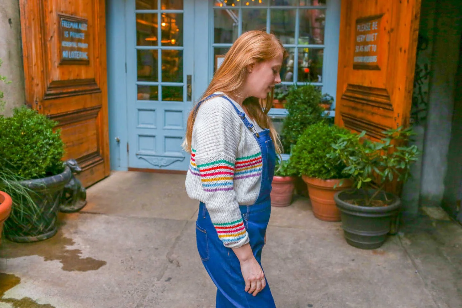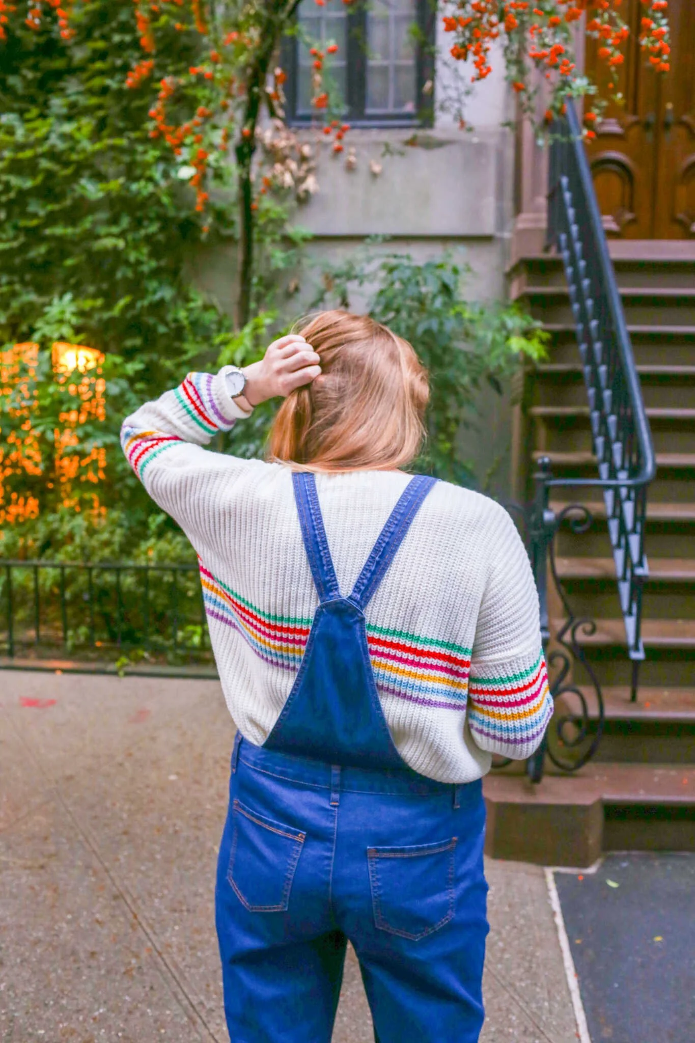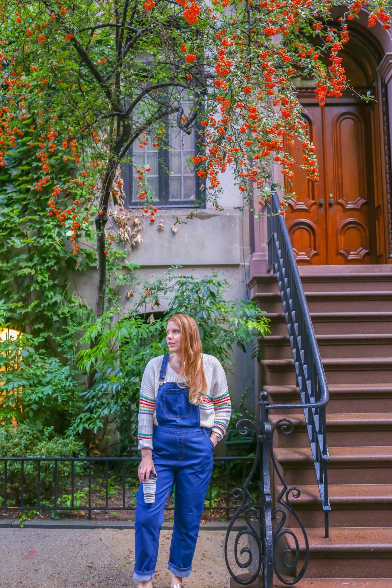 During my last trip to New York City I packed my favorite pair of comfy denim overalls and a bright and colorful sweater. It was the month of October and the seasons were still in transition from summer to fall. It was warm enough to wear overalls and flat sandals in the daytime, but it was nice to have a sweater for those chilly breezy moments.