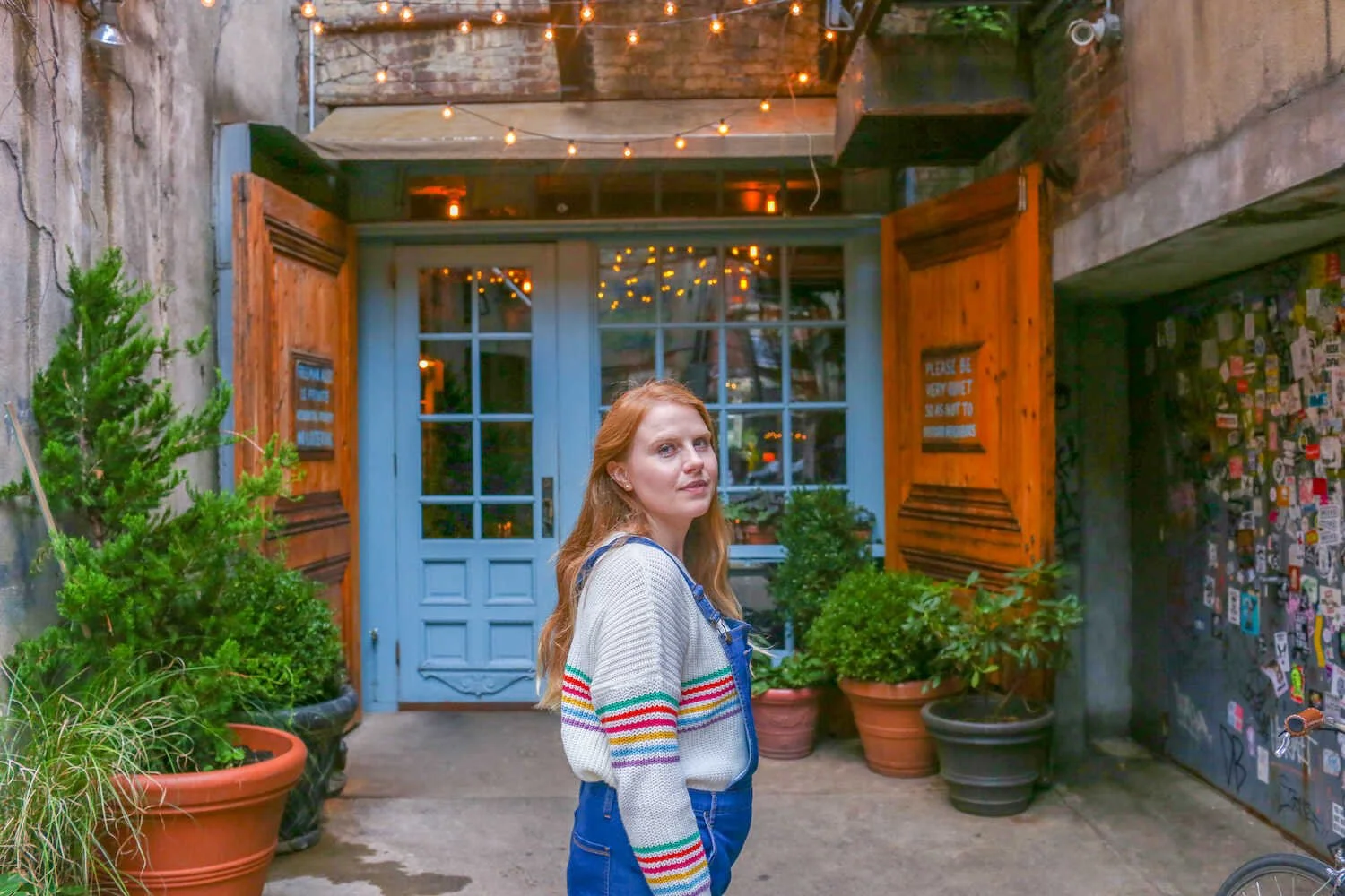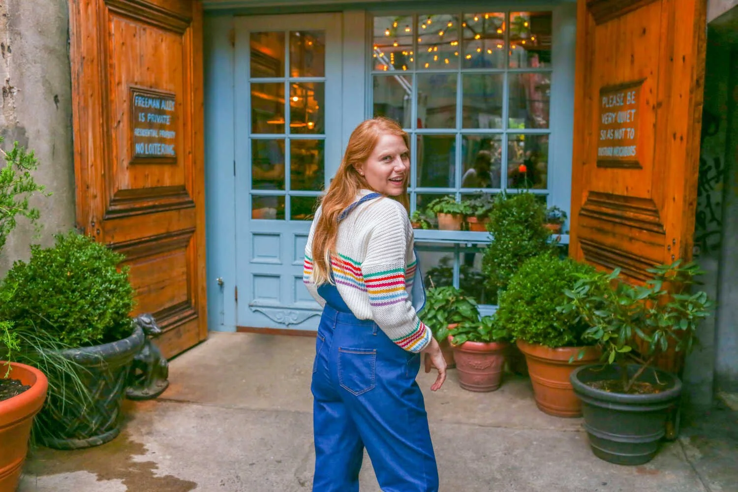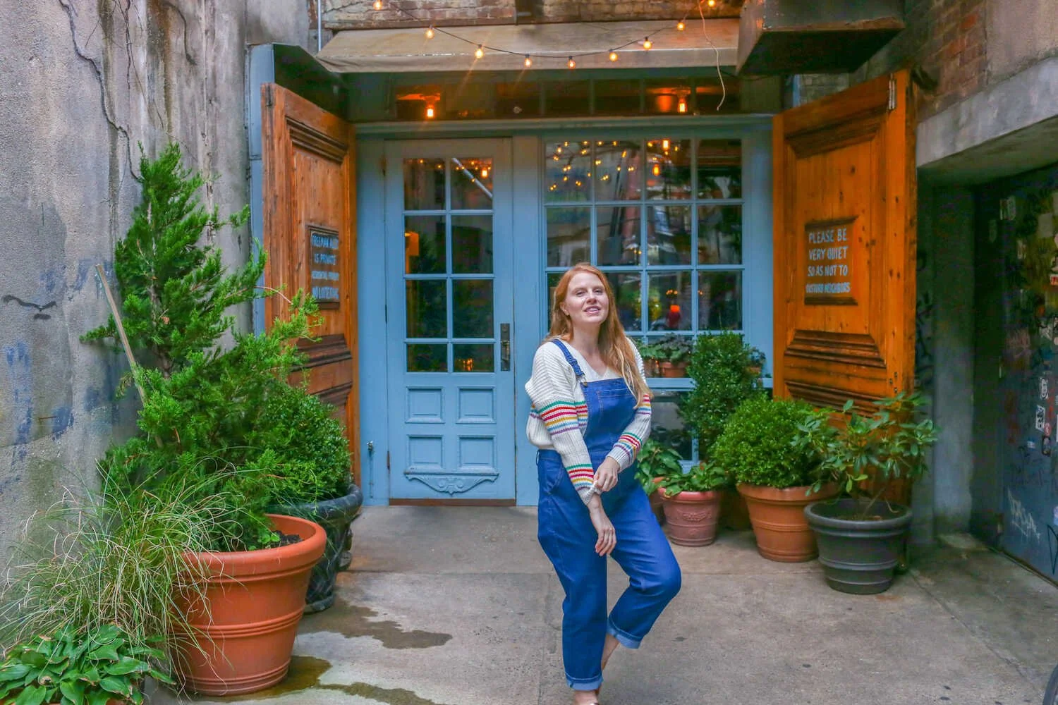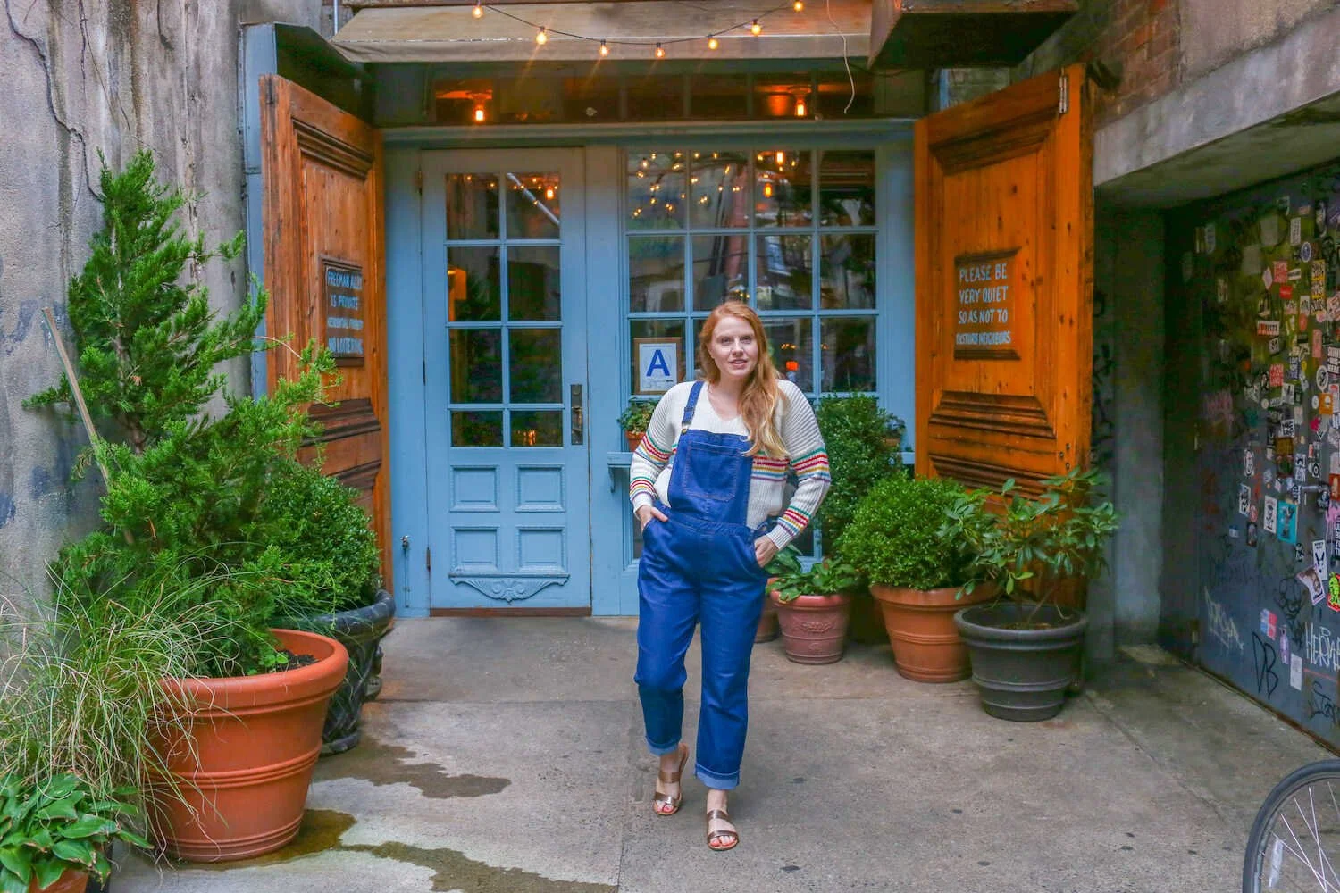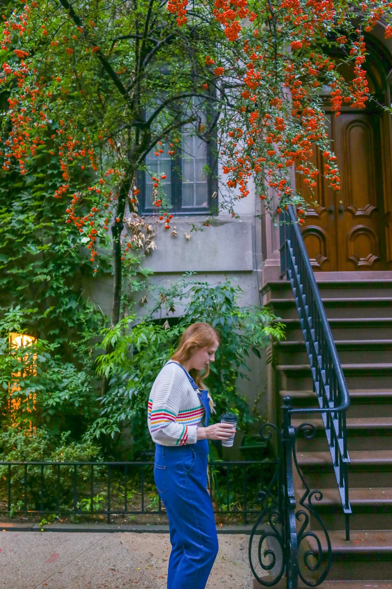During my last trip to New York City I packed my favorite pair of comfy denim overalls and a bright and colorful sweater. It was the month of October and the seasons were still in transition from summer to fall. It was warm enough to wear overalls and flat sandals in the daytime, but it was nice to have a sweater for those chilly breezy moments.