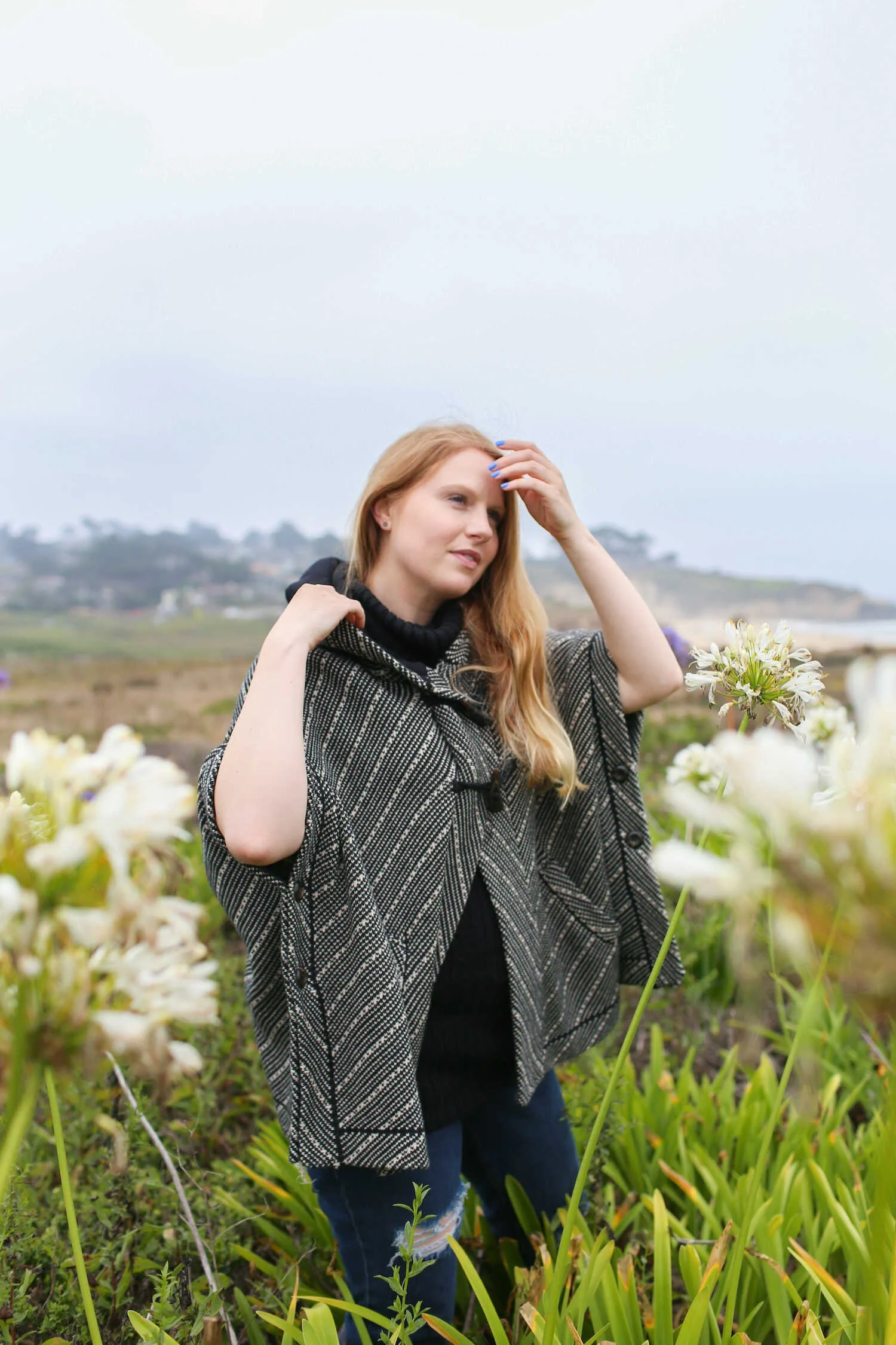 If you're wearing your poncho ensemble in a city or work setting, layer a fitted collard button up shirt underneath.