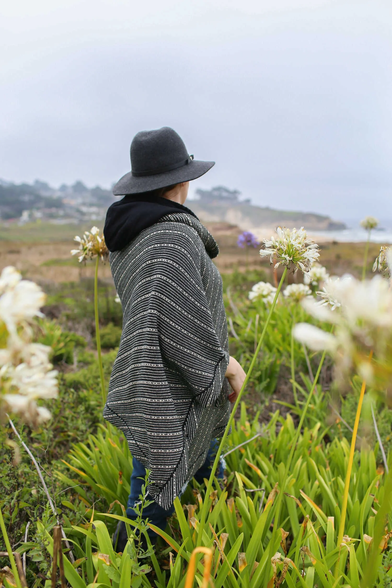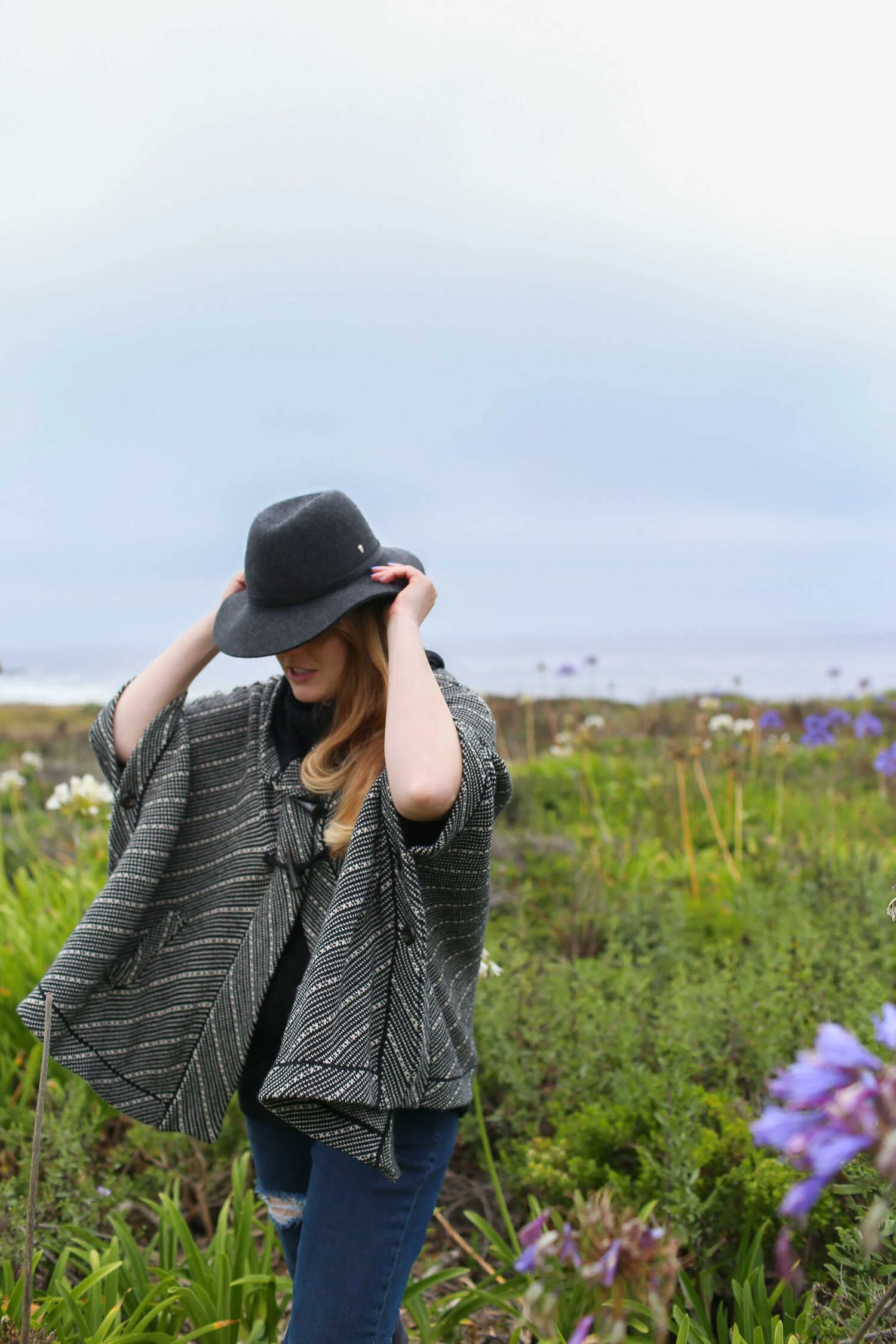 Although a poncho is a bold wardrobe choice, the star of your outfit could also be the shoes on your feet. Pick from OTK boots (over the knee), booties, wellies (Hunters are my favorite), loafers or oxfords. You canβt tell in these photos because the plants are so tall but Iβm wearing my favorite Hunter booties in black.